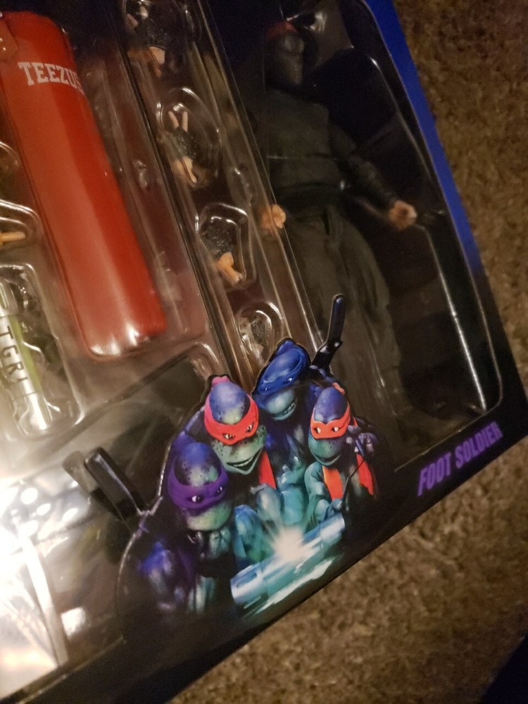 Absolutely love these NECA TMNT figures! The Keno and Foot Soldier duo is packed with detail, just like in Secret of the Ooze. The articulation is smooth, perfect for posing, and the paint apps are crisp. Minor package wear as shown, but the figures inside are flawless. A must-have for any TMNT fan—nostalgia hits hard with these!