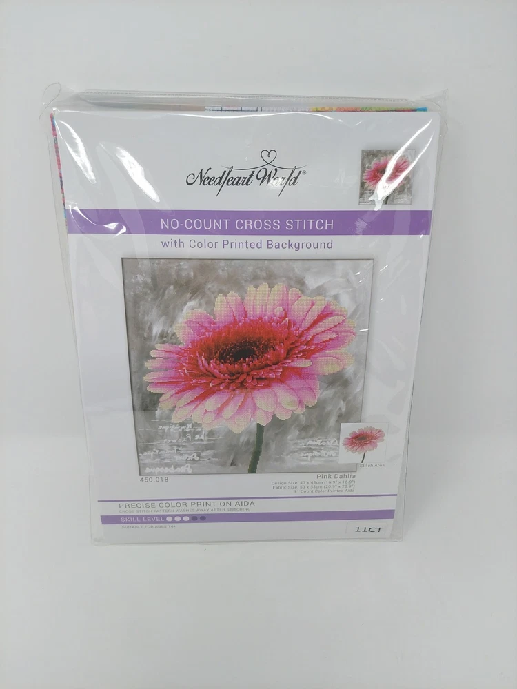 NEEDLEART WORLD No Count Cross Stitch Kit - PINK DAHLIA - 16.9" x 16.9".