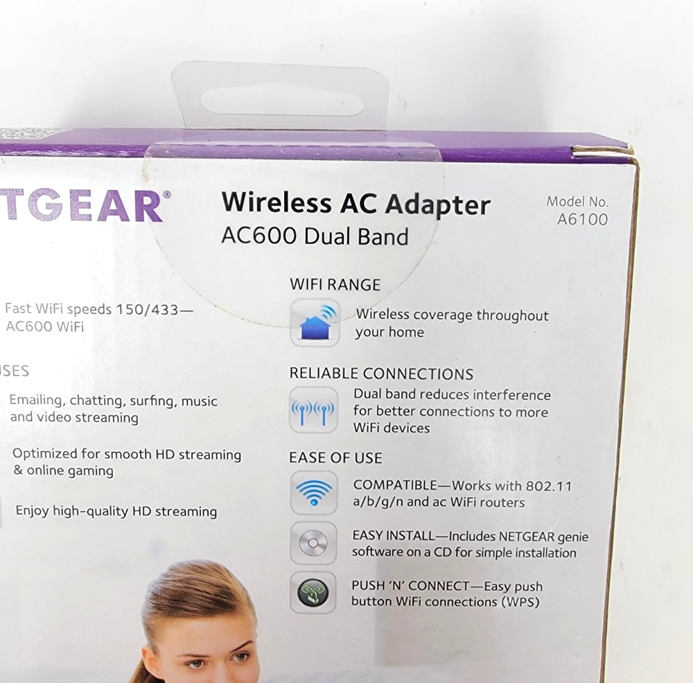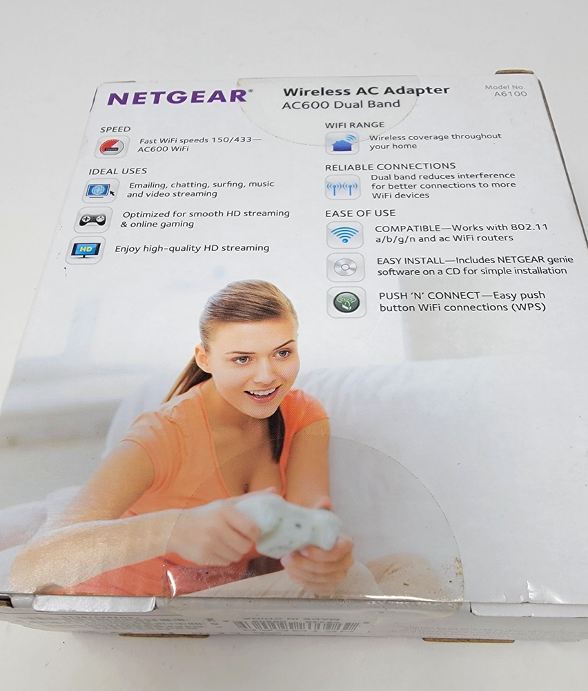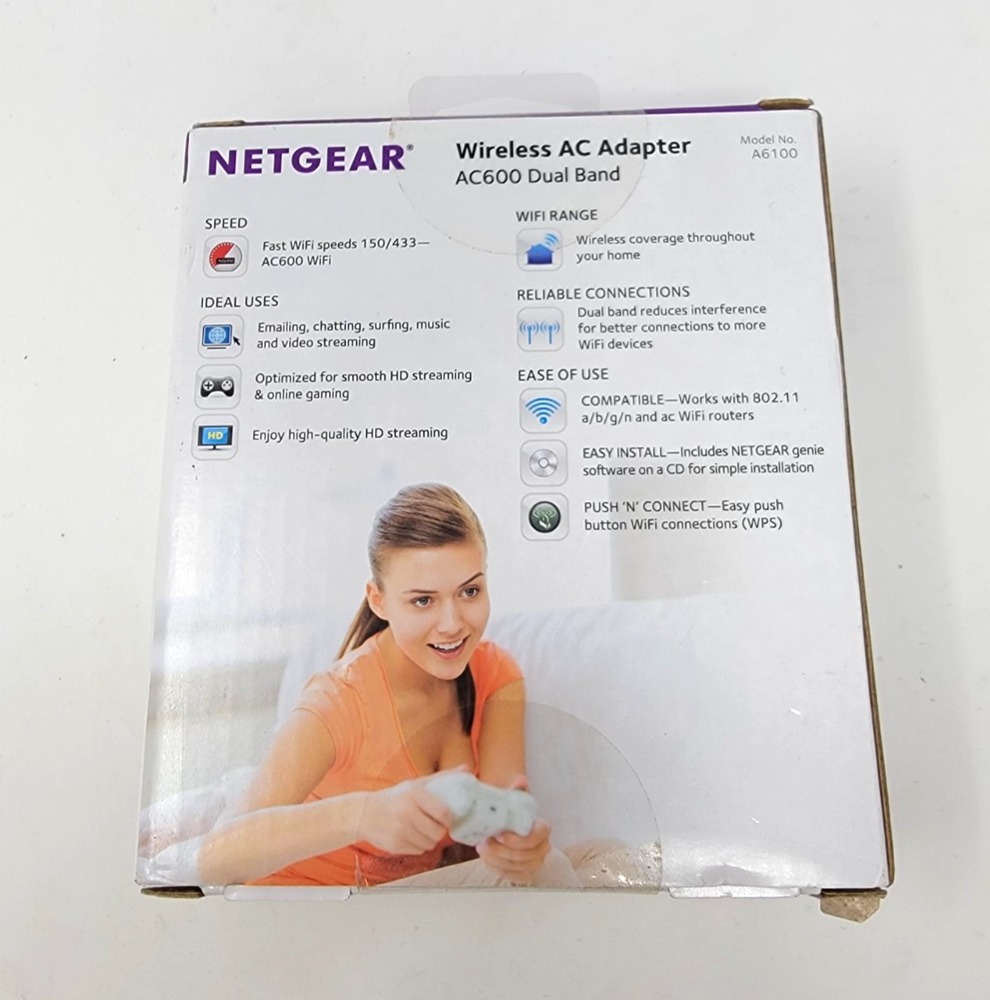NETGEAR Wireless AC Adapter AC600 Dual Band New Sealed Condition is New. See pictures for condition. Fast Shipping. Shipped with USPS Ground Advantage or equivalent