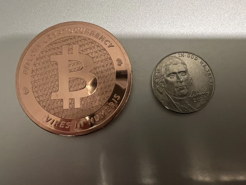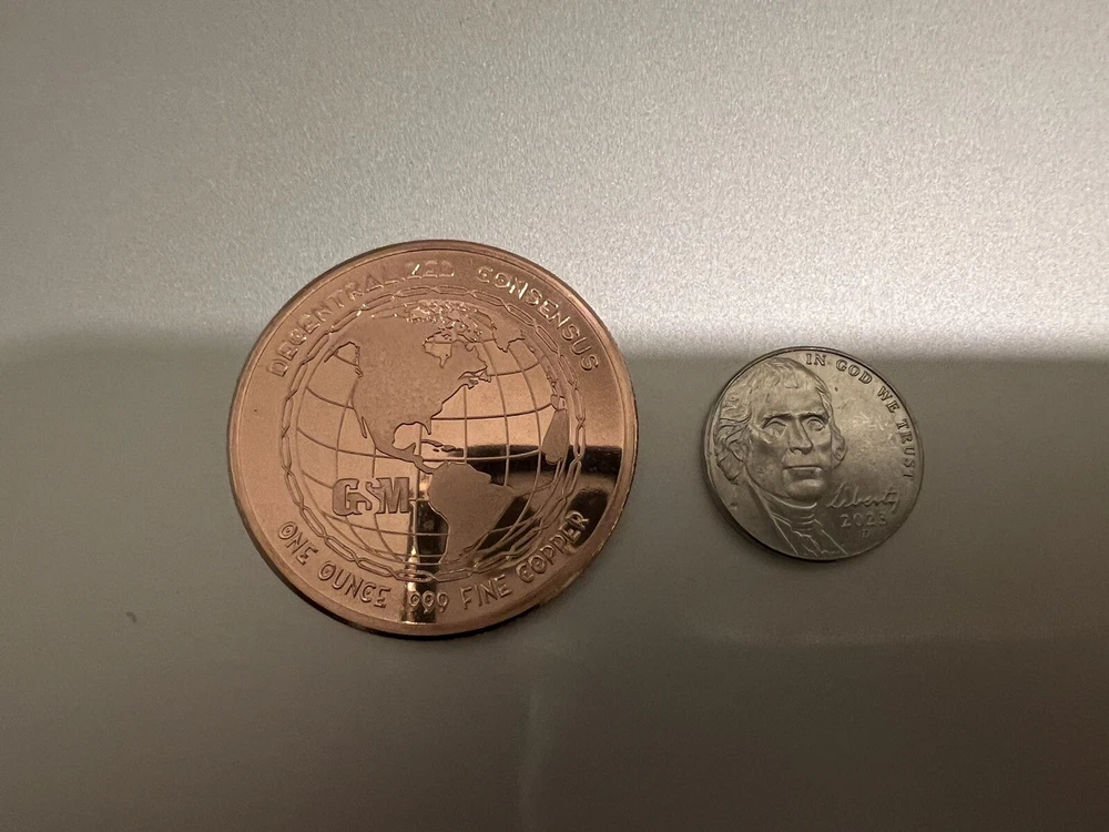 New 1 Oz Golden State Mint Bitcoin Cryptocurrency .999 Pure Solid Copper Round Coin BU With Free Capsule! Brand new amazingly intricate & beautiful 1 ounce .999 solid fine copper rounds are freshly minted in 2024 & purchased direct from an United States Based Mint...These coins are 100% made/manufactured in the USA from start to completion.. Product Specifications: Mint: Golden State Mint Composition: .999 Fine Copper Collection: Cryptocurrency Condition: Mint Fresh Edge Design: Reeded Diameter: 39.3 mm/1.55" Thickness: 3.31mm/0.130" Weight: 1 Avoirdupois Ounce