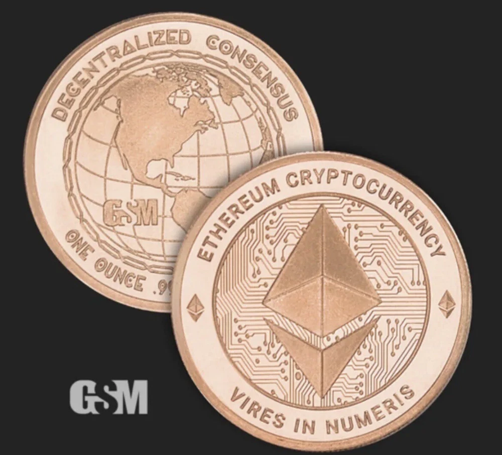 New 1 Oz Golden State Mint Ethereum Cryptocurrency .999 Pure Solid Copper Round Coin BU With Free Capsule! Brand new amazingly intricate & beautiful 1 ounce .999 solid fine copper rounds are freshly minted in 2024 & purchased direct from an United States Based Mint...These coins are 100% made/manufactured in the USA from start to completion.. Product Specifications: Mint: Golden State Mint Composition: .999 Fine Copper Collection: Cryptocurrency Condition: Mint Fresh Edge Design: Reeded Diameter: 39.3 mm/1.55" Thickness: 3.31mm/0.130" Weight: 1 Avoirdupois Ounce