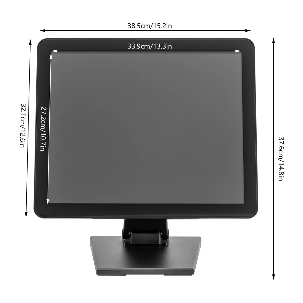 Material: ABS Color: Black Installation Method: Wall-mounted, Countertop Model: H1703 Screen: LCD Screen Sype: Capacitive Screen Size: 17in Viewing Angle: Horizontal: 160° Vertical: 140° Resolution: 1280 x 1024 Screen Ratio: 4:3 Average Brightness: 300 cd/m2 Touch Type: 10-point Touch Support System: Win7 8 10, Android, Raspberry Pi, Linux Interface Type: HDMI, VGA, USB Color Calue: 16.2M Response Time: 5ms Contrast Ratio: 500:1 Video Input Format: (Analog) RGB Touch Response Time: 2s Use Time: 50,000 Hours Touch Effective Times: 50,000,000 Times Adjustment Angle: 0-90° Frequency: 30-80KHZ/60-75Hz Voltage: 100-240V Rated Value: DC12V, 2.6A, 35W Plug Type: US Standard Wall Hanging Hole Spacing: 75-100cm/29.53-39.37in NEW 17 Inch Touch Screen POS LCD TouchScreen Monitor Retail Kiosk Restaurant Bar Mobile Tablet for Small Business Restaurant Retail Grocery Convenience Mobile Food Truck Dining Bubble Tea Coffee Shop Beverage Bakery Note:This product is only a display, is required to connect the computer to use, only touch function and display function. The product is not with the system, without software Description A quality cash register can easily help you when customers are checking out. After downloading the required software, it will become an easy, fast, and user-friendly marketing solution. And it can also be used multi-functionally, regardless of the checkout and cashier. With the help of this item, you can provide better service to your customers. Application It is suitable for garment, supermarket, nail, baking, catering, food truck, car wash and other industries, and can be used in shopping malls, hotels, restaurants, clubs, medical equipment, industrial automation equipment, monitoring centers, self-service inquiry devices such as hospitals, police stations, post offices, government halls banks and other public information inquiries. It is compatible with multiple systems and supports multiple payment methods Specifications Material: ABS Color: Black Installation Method: Wall-mounted, Countertop Model: H1703 Screen: LCD Screen Sype: Capacitive Screen Size: 17in Viewing Angle: Horizontal: 160° Vertical: 140° Resolution: 1280 x 1024 Screen Ratio: 4:3 Average Brightness: 300 cd/m2 Touch Type: 10-point Touch Support System: Win7 8 10, Android, Raspberry Pi, Linux Interface Type: HDMI, VGA, USB Color Calue: 16.2M Response Time: 5ms Contrast Ratio: 500:1 Video Input Format: (Analog) RGB Touch Response Time: 2s Use Time: 50,000 Hours Touch Effective Times: 50,000,000 Times Adjustment Angle: 0-90° Frequency: 30-80KHZ/60-75Hz Voltage: 100-240V Rated Value: DC12V, 2.6A, 35W Plug Type: US Standard Wall Hanging Hole Spacing: 75-100cm/ 29.53-39.37in Package Size: 43*40*15cm/16.93*15.75*5.91in Touch Screen Size(W*L): 33.9*27.2cm/13.3*10.7in Product Height: 37.6cm/14.8in Whole Screen Size(W*L): 38.5*32.1cm/15.2*12.6in Groos Weight: 5.2kg/11.46lb Net Weight: 4.65kg/10.25lb Package Included 1*Mobile Tablet 1* Power Adapter 1*VGA Cable 1*Power Cable 1*HDMI Cable 1*USB 2.0 1*Capacitor Pen 1*English Manual Key Features Robust and Durable: High-quality ABS makes it very strong and lightweight, resistant to wear and tear, anti-aging , and impact resistance , ensuring a long service life. Multi-functional: After connecting to your host and WiFi, it can realize cashier, voice recording, mobile ordering, order taking out, remote operation and store management, etc. What's more, you can also download some video software or chat software to it, so you can watch movies or chat with friends at your leisure. Rich Intelligent Interface: It is equipped with 1 USB port, 1 power port, 1 VGA port, 1 headphone port, and 1 HDMI port, which can connect to an external keyboard, printer, audio, network cable, etc. to meet your different needs. High cost-Effectiveness: Compared with traditional displays, our products consume less energy, which can to some extent save costs, reduce environmental pollution, and create a healthier quality of life. Store Assistant: It can quickly check out customers, improve store image, reduce manual checkout errors, and reduce the workload of store staff and helps you to accurately grasp the store operation, making it easier and simpler to open a store. Versatile Operation: Ten-point touch mode is used, so you can perform a one-handed, two-handed, and one-finger operation to meet your operating habits and needs. Comfortable and Convenient: LED backlight technology can effectively prevent flickering, make the screen image clearer and more stable, and reduce the harm of strong light to the eyes. A 17 inch high-definition screen with a resolution of 1280 x 1024, a brightness of 300cd/m2, a contrast of 500:1, and a color value of 16.2M make the screen colorful and visually appealing. Adjustable and Foldable: Whether you are standing or sitting in front of the register, a display screen with adjustable up and down angles (0-90°) can provide you with a comfortable experience and foldable design makes the product ideal for stores with compact space. Meticulously Designed: In addition to tabletop installation, this product also supports wall mounted installation with a hole spacing of 29.53-39.37in, so you can freely choose according to the actual situation of the store . Protective Packaging: The sponge can better protect your product during transportation, thereby maximizing its complete delivery to your hands. Easy to Clean: The smooth surface and simple construction allow you to easily clean off dirt and residue with a soft towel. Customer Service: We aim to provide quality products and services. If you have any problems, please feel free to contact us. We will reply and solve the problem for you as soon as possible. Details Buttons on Back: The back of the item has auto adjust, menu button, volume level and power on/off button, which is very convenient for you to operate with one hand. Sturdy Base: This rectangular base increases the area in the hand and can better maintain the stabi