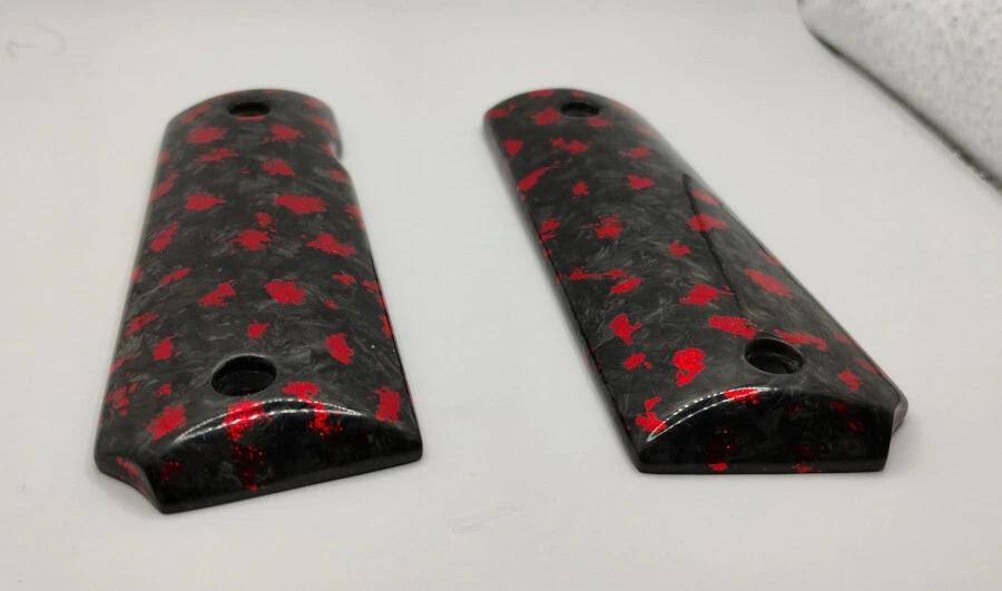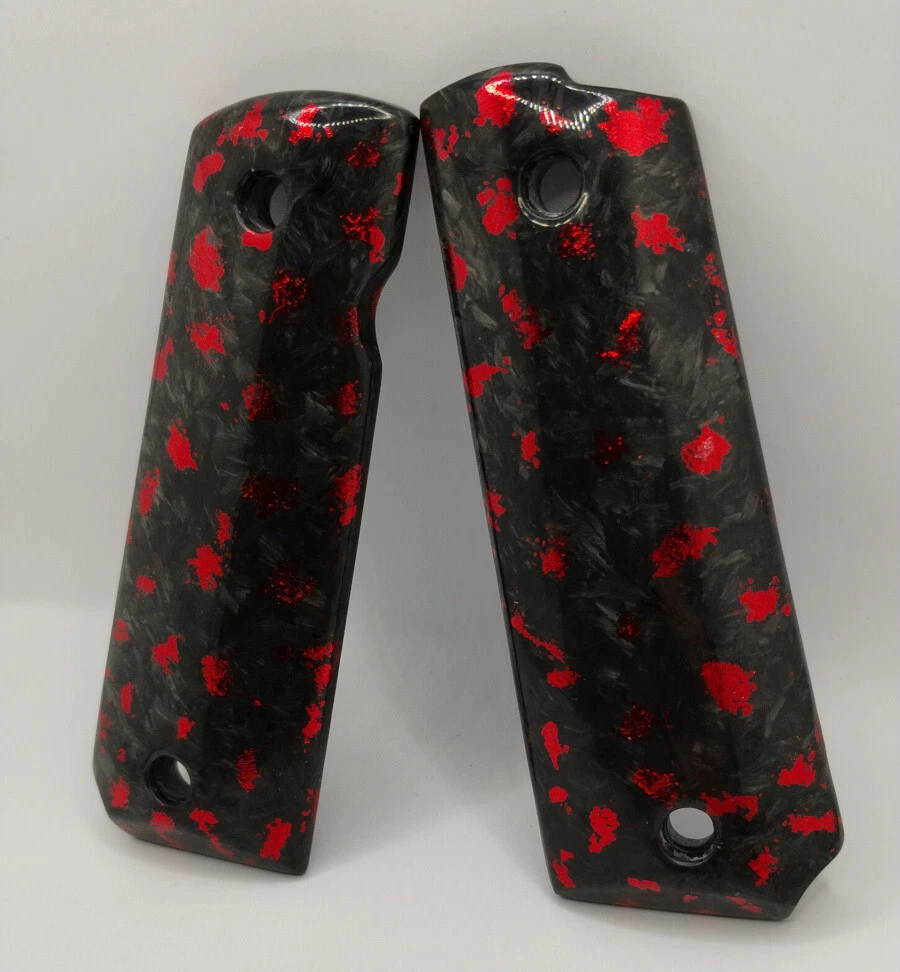 Does not come with any hardware! Only grips are included. 1911 Full Size Forged Carbon Fiber Grips for Kimber Colt Springfield Taurus Rock Island Made of 100% solid forged carbon fiber with red metallic flake and a semi gloss finish These forged carbon fiber grips are very strong and durable, will not warp, crack or dry out like other type of grip materials. These grips fit all full size 1911 pistols by Colt, Kimber, Springfield, Remington, Sig, Taurus, Ruger SR1911, Rock Island, Wilson, Smith & Wesson and more.