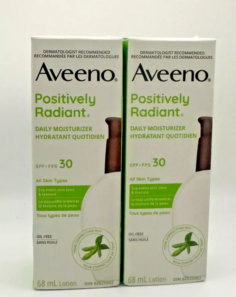 NEW! 2X! Aveeno Positively Radiant Daily Moisturizer SPF 30. New. 2.3oz Exp 2025 Fast and Free Shipping Within The US