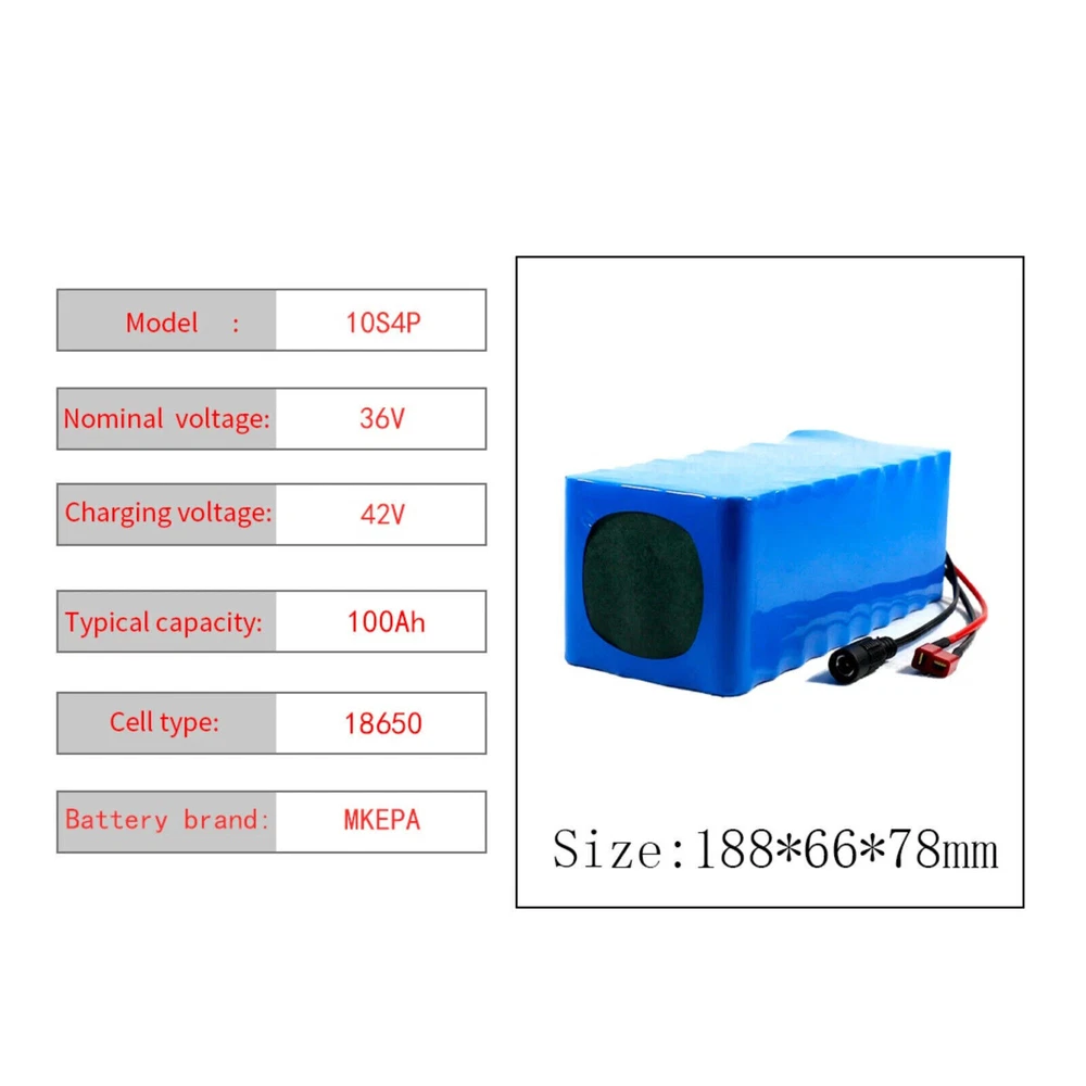 DESCRIPTION: Condition: 100% New Colour: As the picture shown "Battery settings: Battery model: 36V 10S4P Nominal capacity: 100Ah Rated voltage: 36V Combination of cells: 4 parallel series 10 Battery size: 188X66X78mm Number of batteries: 40 Instantaneous maximum discharge current: 30A Maximum continuous discharge current: 15A Standard charging current: 2A Charging time under standard charging current: 4 Hours Maximum direct current load: 5A Fast charging time: 4 hours Output voltage range: 28v-42v Discharge cut-off voltage: 28V Charging cut-off voltage: 42V Charging mode: CC-CV Maximum charging current: 5A Charging temperature: 0-45° Degrees C Discharge temperature: - 10-60℃ Battery weight: 1.8kg As the battery is a custom product, there is an error in the weight and size of the battery. Just beg to be excused" NOTE: 1. Due to the hand measurement, there may have error measurement about 1-5mm. 2.Item color displayed in pictures may be showing slightly different on your computer monitor since monitors are not calibrated same. Your understanding will be highly appreciated. SHIPMENT: 1.Buyer take responsibility in import / tax cost (not included in item price) 2.Pls contact with us to confirm extra cost if you need to upgrade the shipping option 3.If there's any concern about shipping, pls contact with us for further confirmation RETRUN POLICY: -30 DAY MONEY BACK RETURN POLICY: 1. If you are unhappy with your item or changing of mind purchases for whatever reason, pls keep the item and package original. Buyer needs to afford the return postage. Besides, original postage will not return. 2. Please contact us within 30 days if you have a faulty item and we will cover the return postage where necessary, we do not cover this outside 30 days of purchase. -ADDRESS CHANGES: 1. If you enter the incorrect name or shipping details before purchasing, we will arrange shipment for you according to your ebay address. 2. We are not responsible for these changes if there is a mistake entered by the buyer. CONTACT US: 1. Our working time is from Beijing time 9:00am to 18:00pm on working days. 2. We hope to give you a good shopping experience. We will glad to help you solve problems once we receive your letter on working time. 3. If you have any questions or advice about the product you receive, pls contact us and send the pictures about the item firstly, we will check the issue for you ASAP and make you sastified.