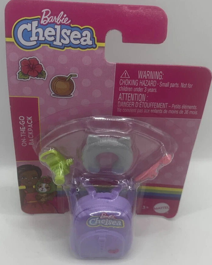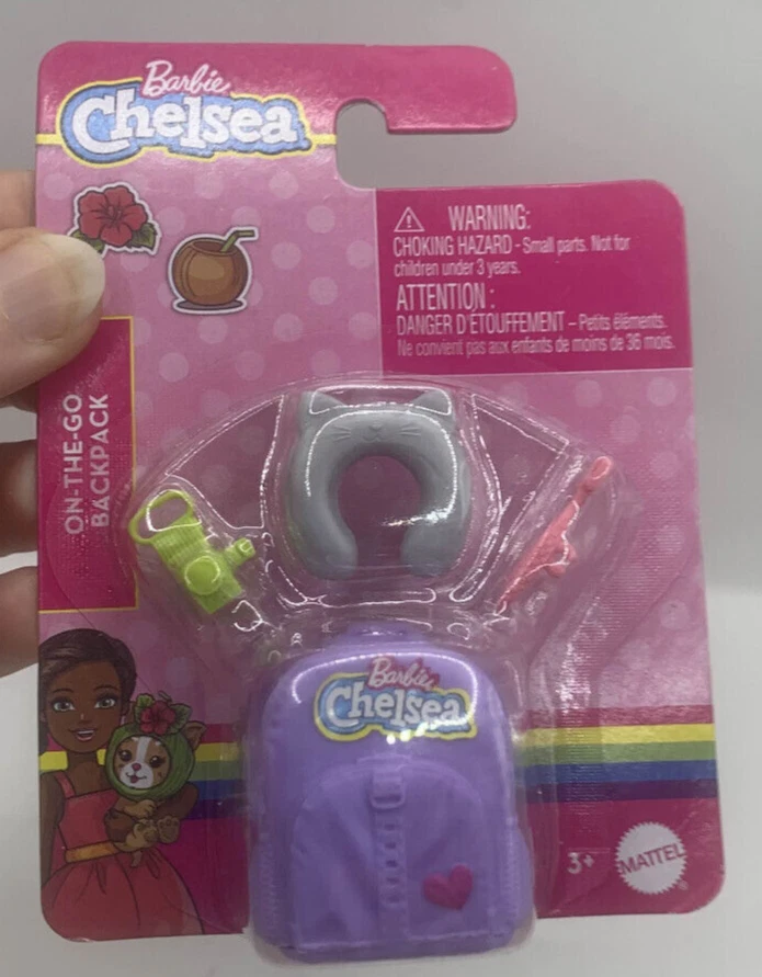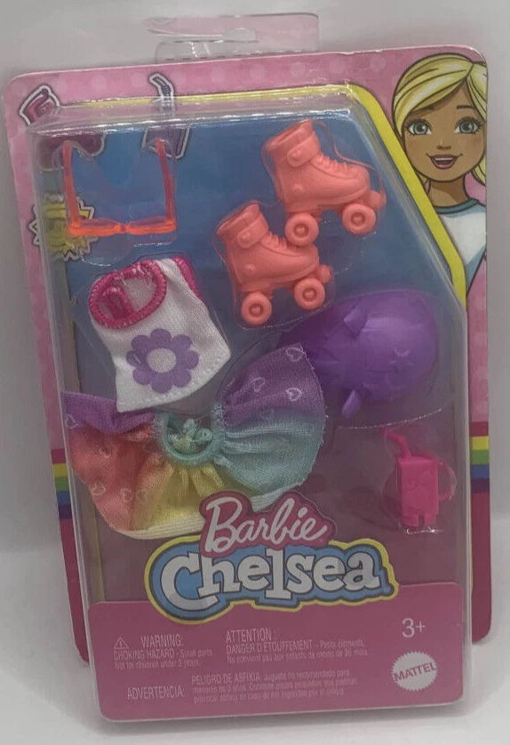 Lot of 2 packs Brand New in packaging Chelsea accessories. One is a Back to School backpack set and the other is an outfit. Rollerskating Set with helmet and sunglasses. Purple backpack The packets are unopened and still sealed. Only minor scratches on the cardboard. Please see all photos. Nonsmoking home but we have pets.