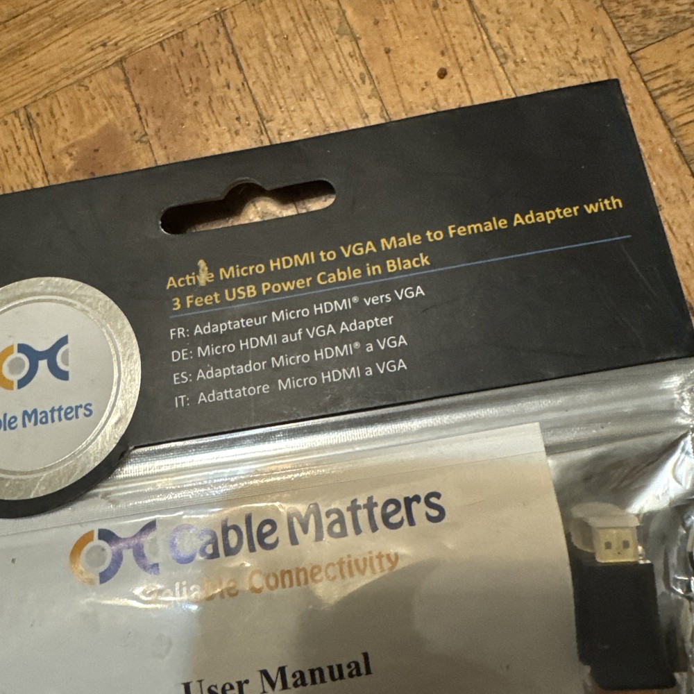 The NEW Cable Matters Active Micro HDMI to VGA Male to Female Adapter 113048 in black is a versatile adapter designed for connecting a micro HDMI device to a VGA/SVGA D-Sub female jack. This adapter allows you to easily convert micro HDMI signals to VGA, making it ideal for connecting your modern devices to older TVs or projectors that only support VGA inputs. With the trusted Cable Matters brand behind it, you can rely on high-quality performance and compatibility with a wide range of devices.