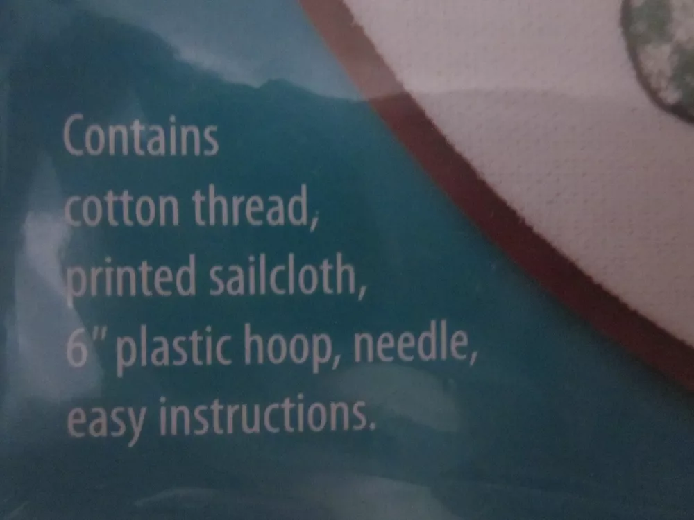 Includes: Cotton Thread Printed Sailcloth 6 Inch Plastic Hoop Needle Instructions PACKAGE HAS BEEN OPENED, BUT ALL PIECES ARE INTACT Smoke free, pet free environment 250128