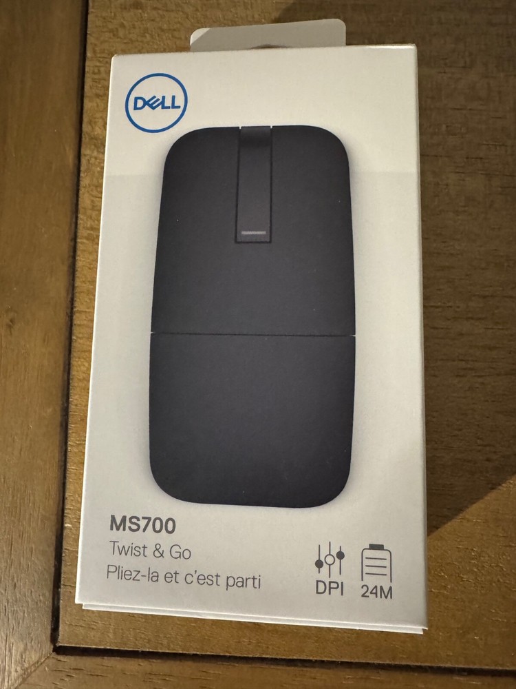 The NEW Dell MS700 Bluetooth Travel Mouse is a slim, black mouse with a maximum DPI of 4000. It features adjustable DPI settings and has 2 buttons for easy navigation. This wireless mouse connects via Bluetooth for convenience and is designed for travel, making it a portable option for working on the go. Made in Thailand, this mouse combines functionality with a sleek design, perfect for users looking for a reliable and efficient input device.