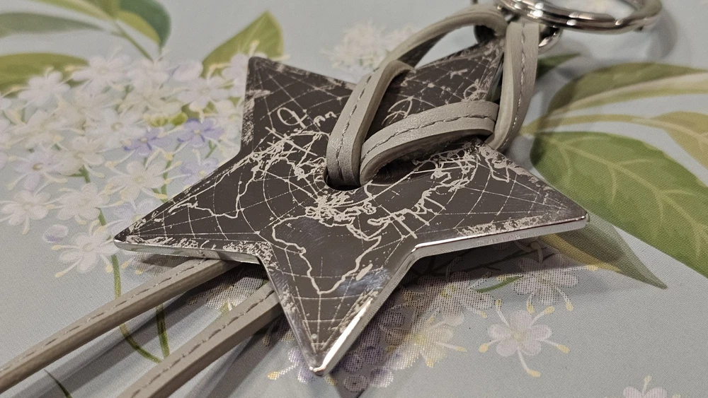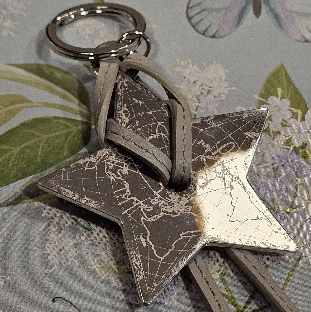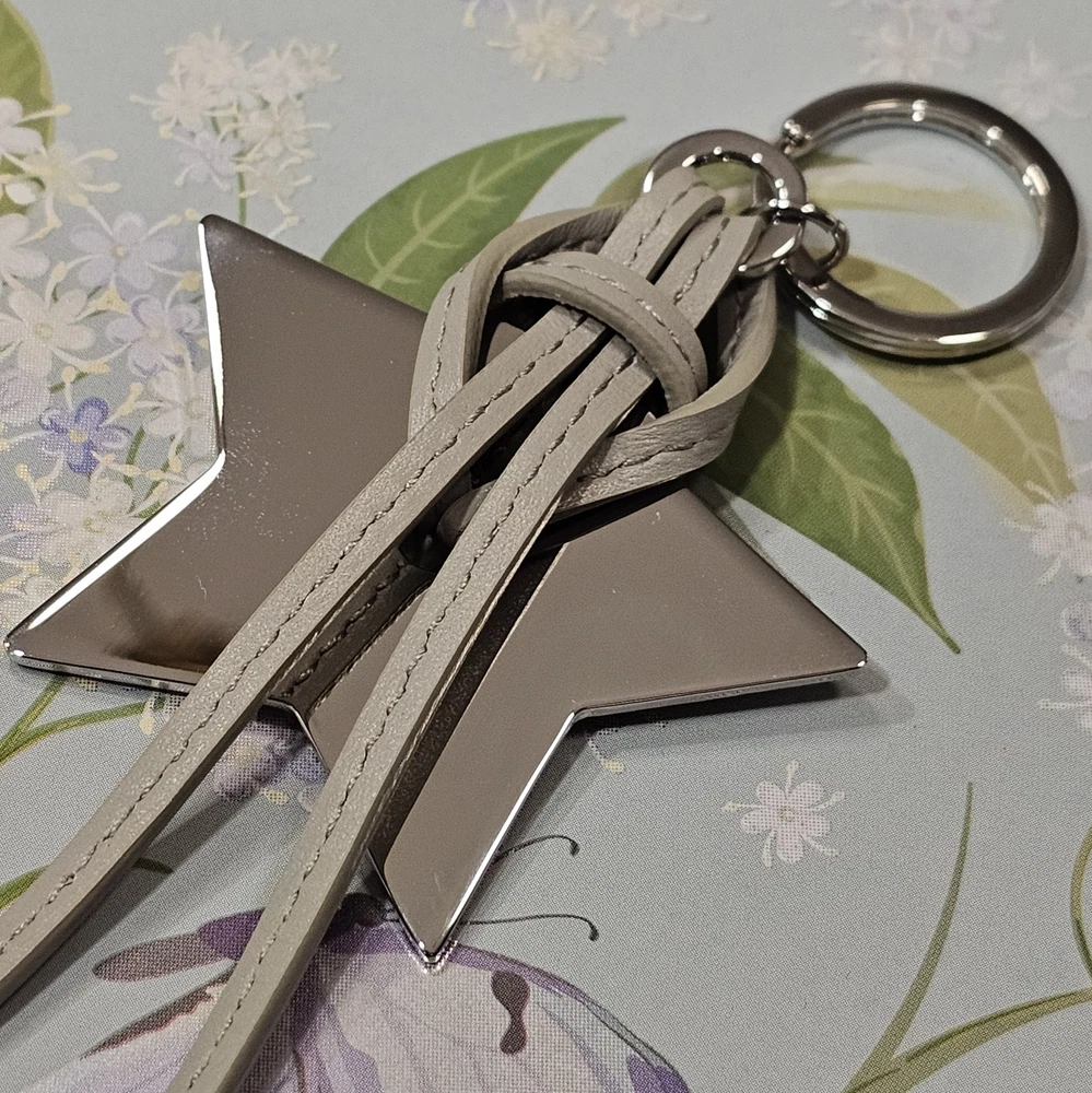 Bring a touch of celestial luxury to your day carry with this Dior Star Keychain. Crafted from smooth gray leather with a silver-tone metal star engraved in a world map design, this elegant piece showcases a signature blend of craftsmanship and sophistication. The embossed Dior logo along the strap adds a refined finishing touch. Perfect for elevating your keys, tote, or handbag, this collectible accessory comes brand new in its original box, a timeless gift for yourself or someone special. Dior is a name synonymous with French elegance and artistry, known for merging classic design with modern allure. Their accessories embody refined taste, making even small details feel extraordinary. ✨ Don’t wait... this stunning piece won’t stay around for long. Snag it before it’s gone!