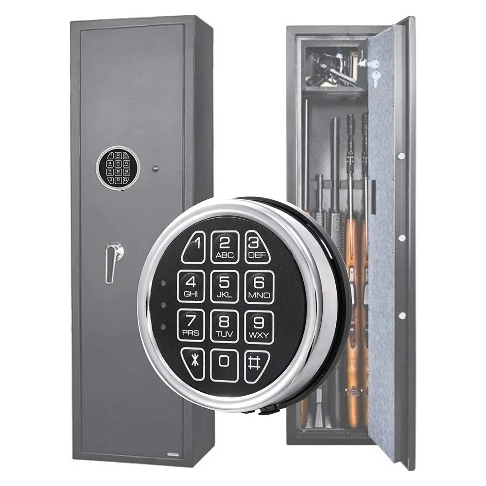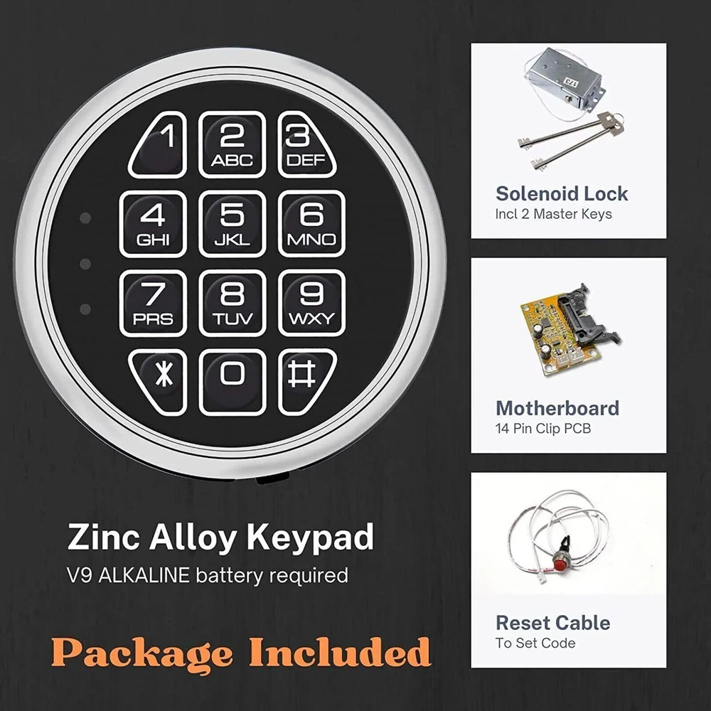 High Security Fireproof Safe Electronic Lock Description: Code Length: 3-6 digits Static current: 10u A Power Supply: One 9V Alkaline battery (not included) Battery life span: About one year Battery low voltage: 4.6 +-0.3V Bolt type: Solenoid Zinc Alloy internal moving part lock kit Actuation time: 5s Item Specifics: Material: Zinc alloy Lock Type: Electronic Model: MT-019SLM Lock Mechanism: Solenoid Color: Black Type: Gun Safe Features: Fire Resistant, Portable, Waterproof Number of Keys: 2 Suitable For: Money, Valuables, Weapons APPLICATION: All home safes & lock box, gun safes, pistol safes. Gun safes, watch winder, file cabinet safe and more.