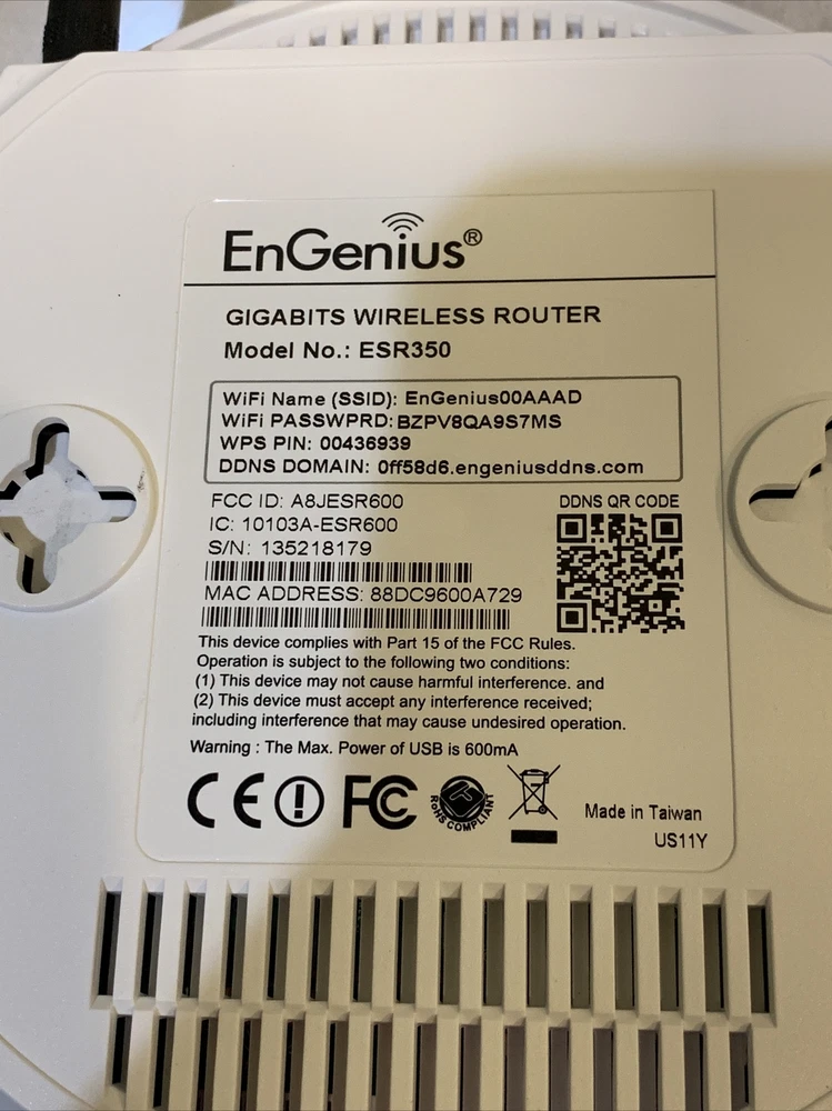Like New never used Genius ESR350 2.4GHz Wireless N300 IoT Gigabit Cloud Router with USB Port Unit is like new - Does not have the original box. Minimum Requirements: Broadband Internet Service (Cable or DSL Modem) Internet Browser (Internet Explorer, Safari, Firefox, Chrome) Computer with Wireless 2.4GHz (IEEE802.11b/g/n) Adapter Technical Specifications: Standard: IEEE802.11b/g/n Compliant; IEE802.3; IEEE802.3u; IEEE802.3ab Up to 300Mbps in 2.4GHz frequency band Built-in 4-Port Gigabit Ethernet (10/100/1000Mbps) switch USB Port for Attaching a Hard Drive to Share Files Qos (Quality of Service): WMM Security: WPA / WPA2 Wireless Encryption Parental Controls, MAC Address/URL Filtering Firewall: Advanced SPI Firewall and NAT VPN Server: with PPTP/ L2TP / IPSec / L2TP over IPSec Supported WPS (wireless Protected Setup) Button Power Saving Technology on WLAN