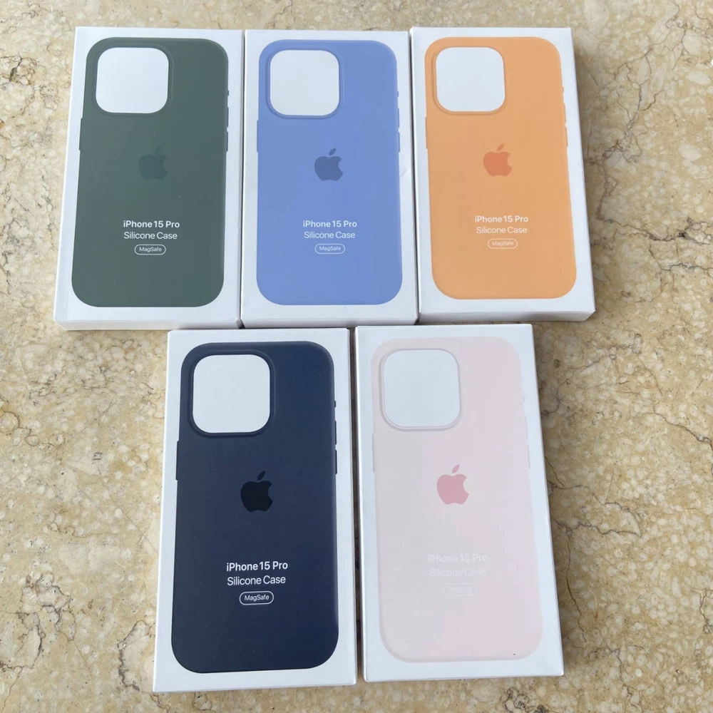 NEW For iPhone15 Pro Max 15Plus 15 Pro Original Silicone Case with MagSafe 2023 Product Description Apple Silicone Case with MagSafe for iPhone 15 series The Silicone Case with MagSafe is a delightful way to protect your iPhone.The silky, soft-touch finish of the silicone exterior feels great in your hand.And on the inside, there’s a soft microfibre lining for even more protection. Slim, convenient, multi-purpose With built-in magnets that align perfectly with iPhone 15 series, the case offers a magical attach and detach experience, every time.The perfectly aligned magnets make wireless charging faster and easier than ever before.And when it’s time to charge, just leave the case on your iPhone and snap on your MagSafe charger, or set it on your Qi-certified charger. What’s in the Box iPhone Silicone Case * 1 Note: Since the product is processed by computer after shooting, the actual color of the product may be different from the picture, please pay attention!!!