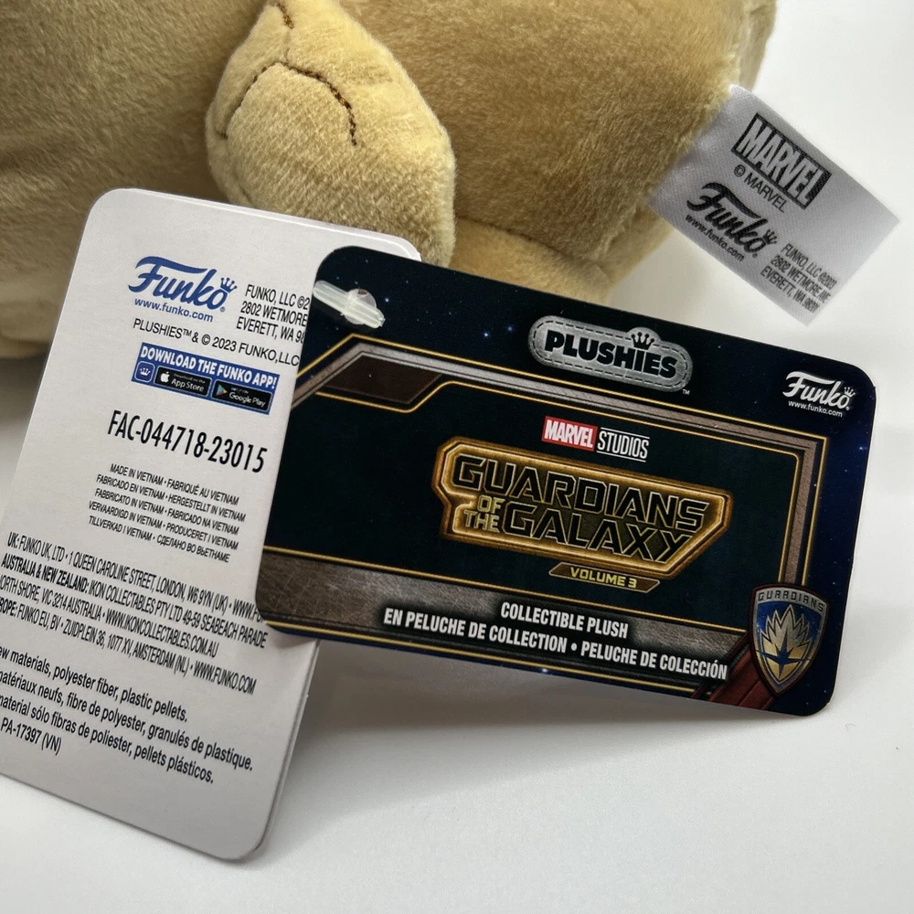 Introducing the Funko Plushies - Baby Groot Plush Toy from Marvel's Guardians of the Galaxy franchise. This adorable collectible plush figure stands 7 inches tall and features the beloved character Groot in a baby-like design. The plush toy comes in its original packaging with all original tags and is completely unused. This Funko exclusive item is perfect for fans of the Marvel Cinematic Universe and collectors of unique and rare collectibles. It is suitable for ages 3 and up and is sure to be a great addition to any collection. Don't miss out on the chance to own this one-of-a-kind Baby Groot Plushie! Free shipping!!!