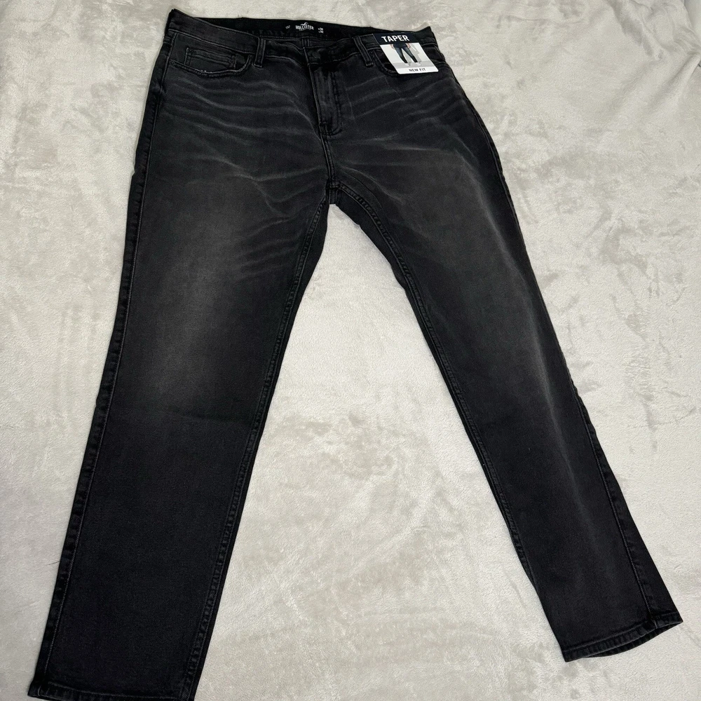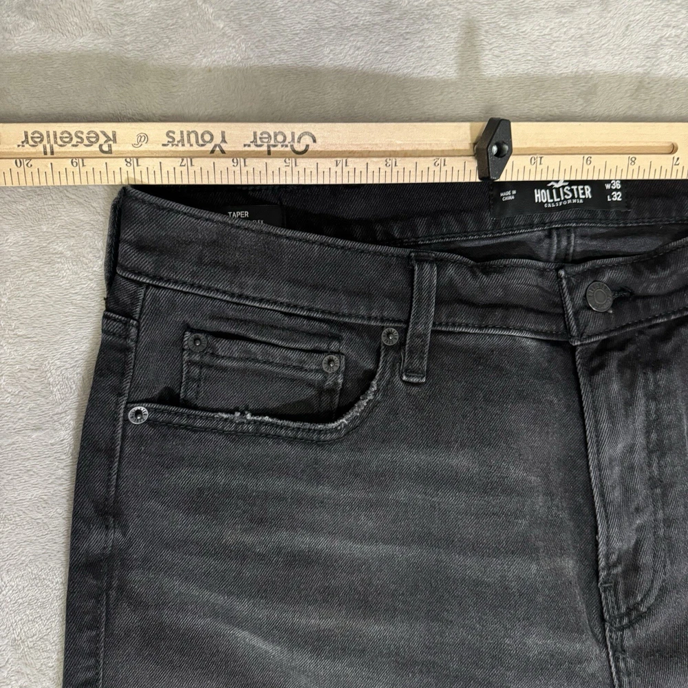 Elevate your denim game with these Hollister Epic Flex Taper jeans. The solid black color and cotton blend material with a denim fabric type make them a versatile addition to any wardrobe. The zip and button closure, medium wash, and regular fit make them a comfortable and stylish choice for any occasion. These jeans are machine washable and have a waist size of 36 inches with an inseam of 32 inches. The tapered style adds a modern touch to the classic denim design. Perfect for the fashion-conscious man who values both comfort and style.