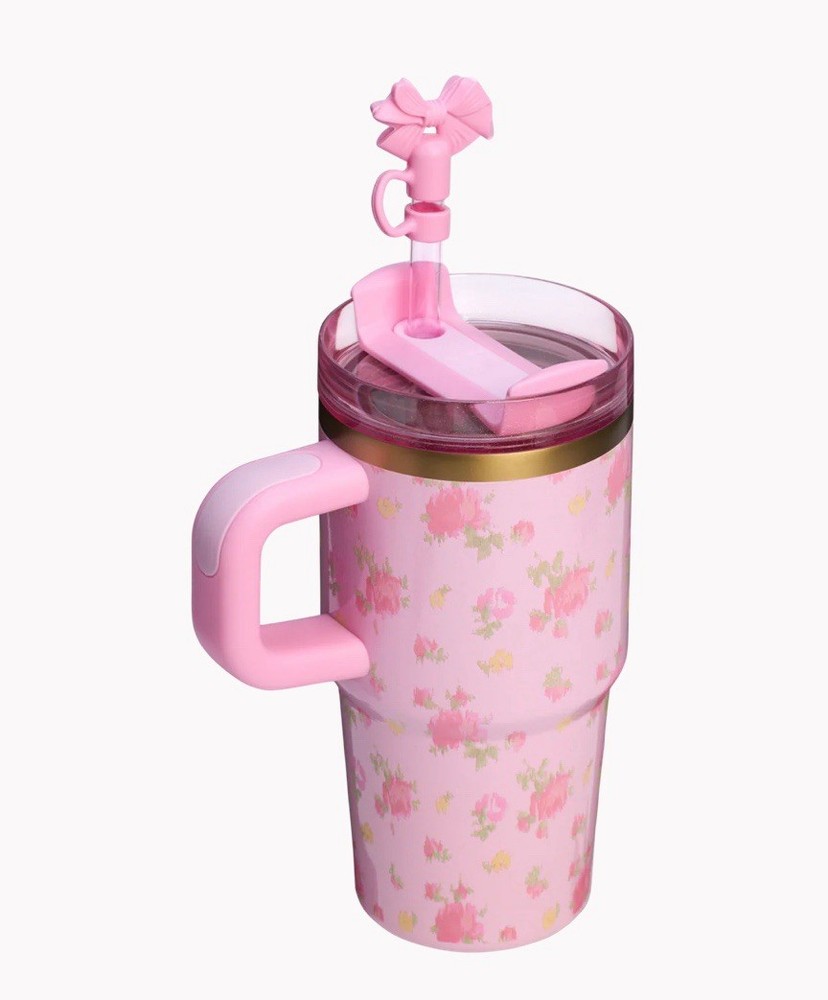 Our love for pink florals goes global with the latest Stanley 1913 x LoveShackFancy collab. The Ibiza Sunset Collection introduces soft coolers in an Ikat rose print that features an exclusive charm set. And each water bottle shines with a subtle and shimmery finish. For a splash of romance wherever you go. Now with a handle, the 20-ounce Quencher® H2.0 FlowState™ Tumbler matches the rest of the Quencher ® collection. Double-wall vacuum insulation keeps your drink at the right temp for hours. The versatile FlowState™ 3-position lid has three sip settings: one for the reusable straw, one without and the option to rotate the silicone cover shut when you’re on the go.