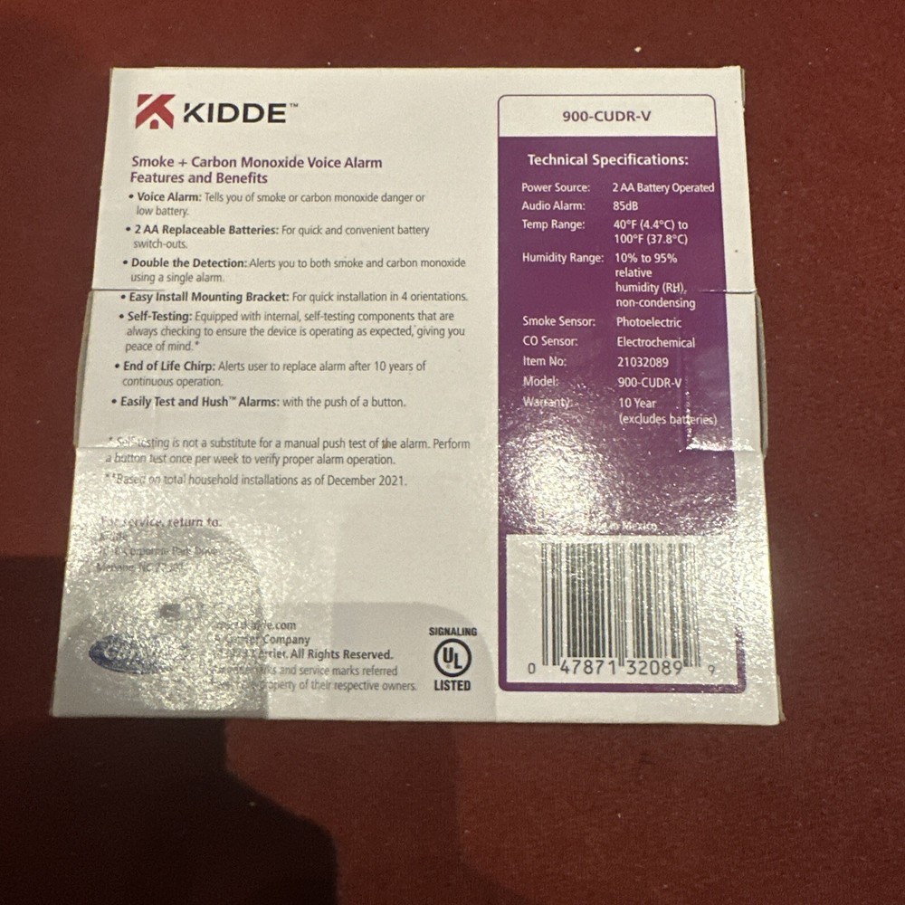 NEW Kidde Smoke + Carbon Monoxide Voice Alarm 900-CUDR-V Free Shipping. Condition is New. Shipped with USPS Priority Mail Flat Rate Envelope.