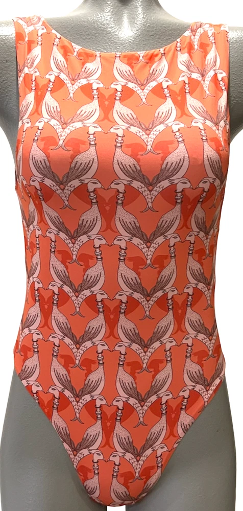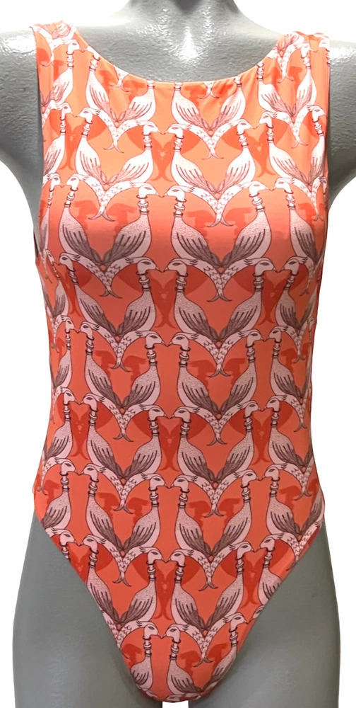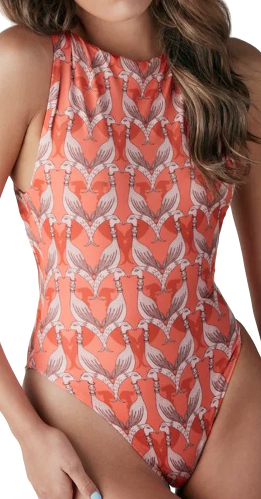 ~ * New La Gotta Bird Zariah Crossback One Piece Swimsuit Size Small * ~ * **New without hang/price tags and never worn. **THE INNER LABEL HAS BEEN MARKED TO PREVENT RETAIL RETURNS. * Brand ~ La Gotta * Style ~ Bird Zariah One Piece Swimsuit * Size ~ Small * Color ~ Orange bird print * Retail price ~ $179 * This one piece swimsuit is classic yet unique with its interesting cut-out back detail and beautiful birds print. Its grapefruit color will beautify your tan. * Pull on style * Hand wash * 80% polyester 20% spandex