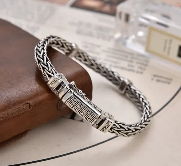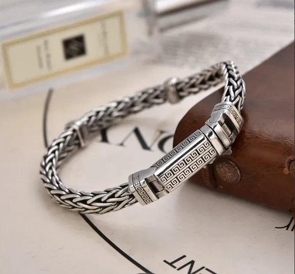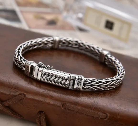 MEN OR WOMEN'S GREEK KEY DESIGN BRACELET APPROX 8.5 INCHES SILVER IN COLOR BEAUTIFUL STUNNING PIECE THAT MAKES A STATEMENT ***CHECK OUT MY MANY OTHER GREEK KEY DESIGN JEWELRY *** ALL ITEMS COME FROM A SMOKE FREE ENVIRONMENT LOCATION: BOXSLOT90D125 SLIDE H Track Page Views With Auctiva's FREE Counter