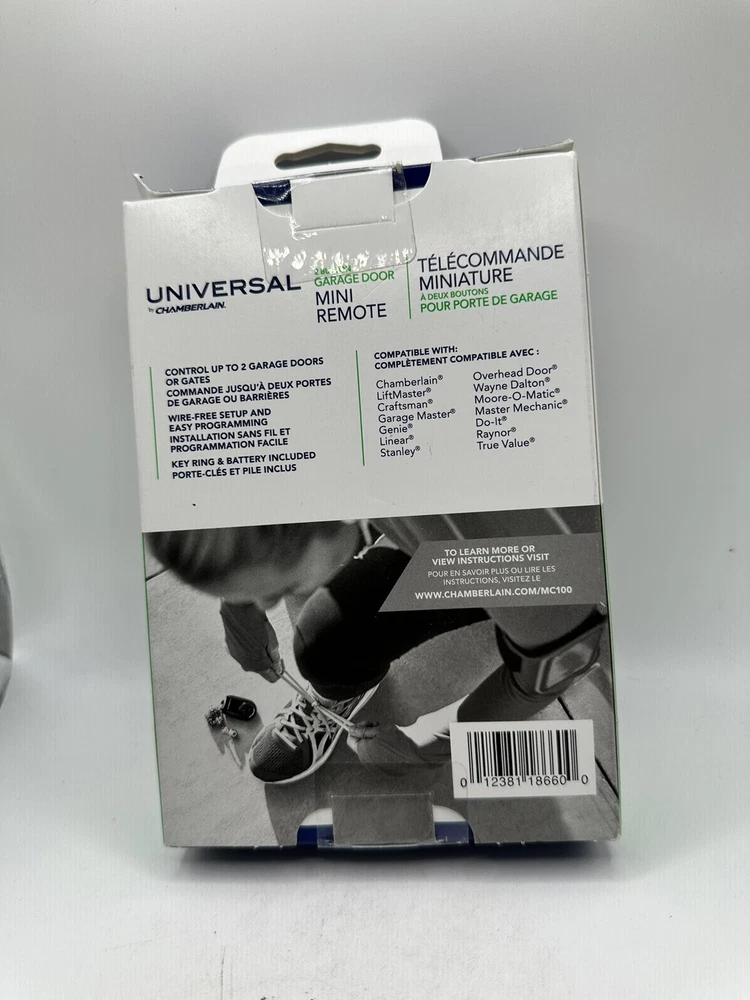 The NEW! Mini Two Button Universal Garage Door Remote by Chamberlain is a compact and versatile remote control that is compatible with Chamberlain garage door openers and works with over 95% of other brands. It features a quiet and easy-to-depress operation, a scratch-resistant soft-touch finish for durability, and is designed with a multicolor aesthetic. The remote does not include a battery and comes with a manufacturer warranty. NEW! Mini Two Button Universal Garage Door Remote