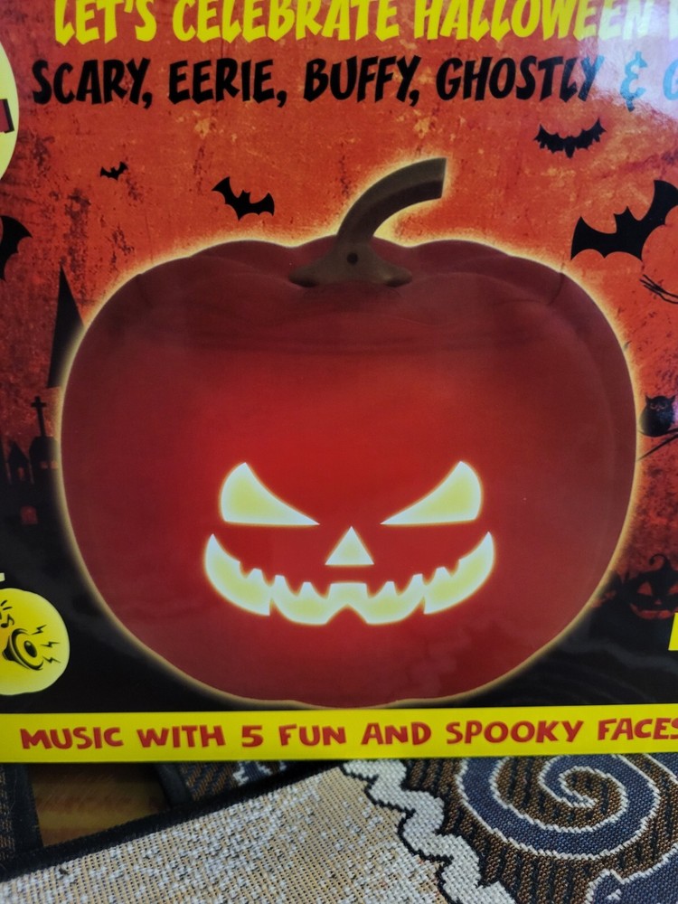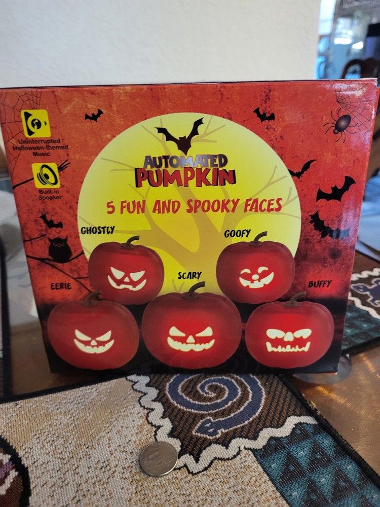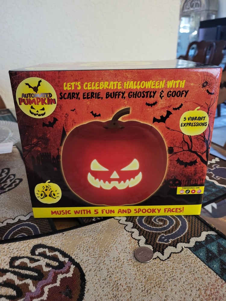 This automated pumpkin is the perfect addition to your Halloween decor! With five different spooky faces and LED lights, it's sure to surprise your guests. The built-in speaker allows for easy play of your favorite Halloween tunes. Made of durable plastic and weighing only a pound, this pumpkin is lightweight and easy to move. The rechargeable battery ensures that it can be enjoyed for hours on end. The vibrant orange color and anime-inspired design make it a unique and fun addition to any collection.