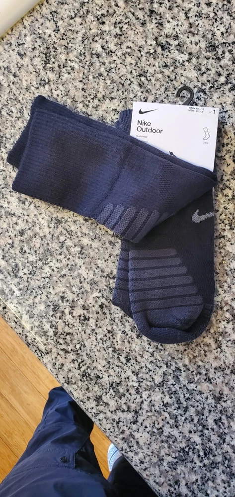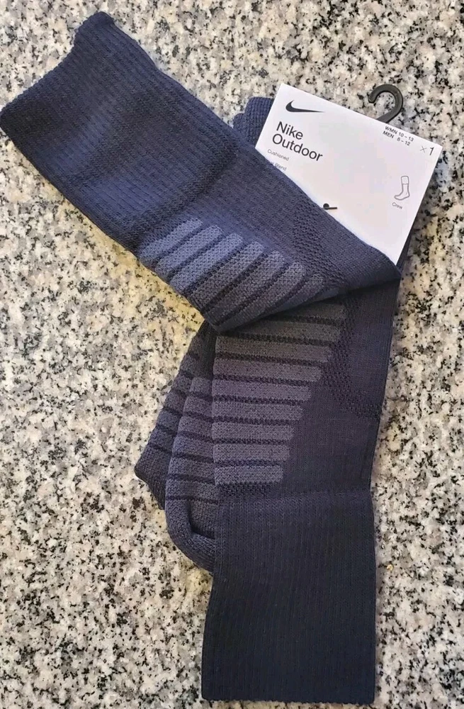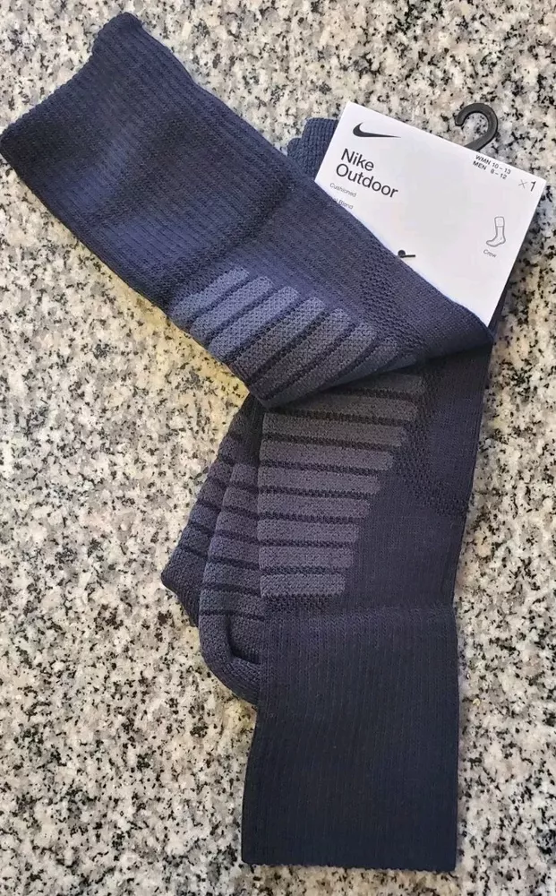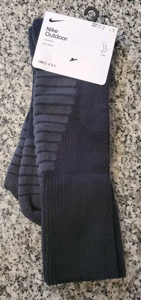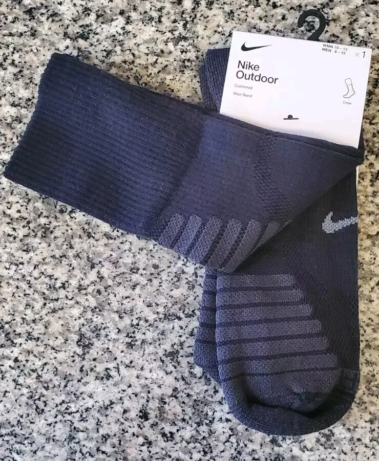 Elevate your outdoor adventures with these Nike crew socks. Made from a blend of polyester and wool, these mid-calf socks are perfect for all seasons and activities, including gym and training, walking, golf, hunting, and crossfit. The full toe style and striped pattern add a touch of style to your outfit, while the moisture-wicking and breathable features ensure your feet stay comfortable and dry. These socks are available in black for men and grey/black for women, with a size range of 6-8 for men and 6-10 for women. They are perfect for casual wear, workwear, and business attire, and are not handmade. Get ready to experience the ultimate comfort and performance with these Nike outdoor socks. Pictures are of actual socks. Brand new never worn and no defects. Feel free to contact me with any questions .
