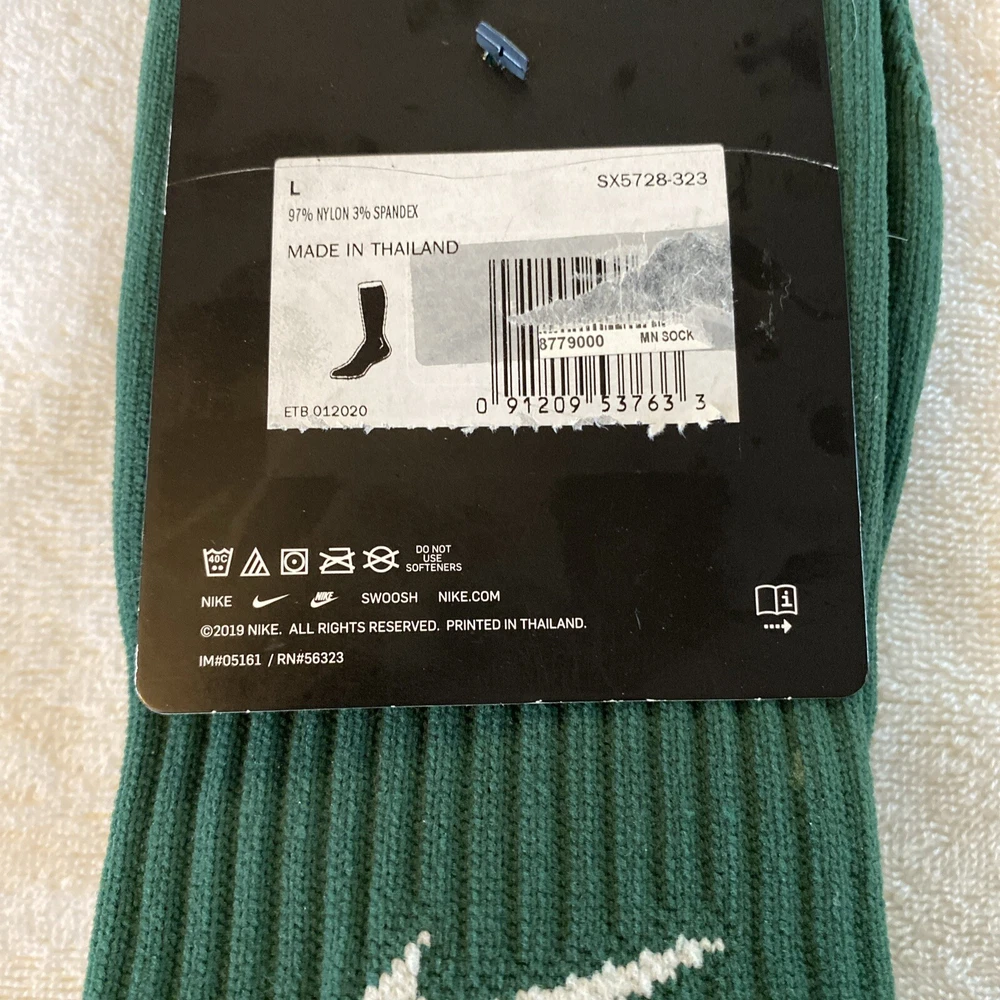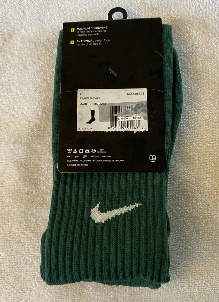 This Nike soccer sock is a must-have for any active man. It is made of a comfortable blend of nylon and spandex, and features a classic ribbed design in green. The knee-high sock is perfect for casual wear or workwear, and is machine washable for easy care. The cushioned sole provides extra comfort and support, making it ideal for soccer and other activities. This sock is available in size 8-12 and is suitable for men. It is a great addition to any wardrobe and is perfect for all seasons.