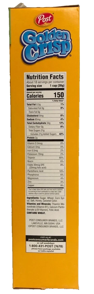NEW SEALED POST FAMILY SIZE GOLDEN CRISP SWEETENED PUFFED WHEAT FLAVORED CEREAL 24 OZ (680g) BOX. YOU WILL GET 1 24 oz (680g) BOX PER PURCHASE NEW SEALED. BOX MAY ARRIVE WITH DENTS OR CREASING DUE TO SHIPPING. FAST SHIPPING WILL SHIP NEXT DAY AFTER PAYMENT CLEARS. ON HAND READY TO SHIP! THIS ITEM WILL SHIP IN A BOX! NEW STORE BUT HAVE PLENTY OF EXPERIENCE SHIPPING.