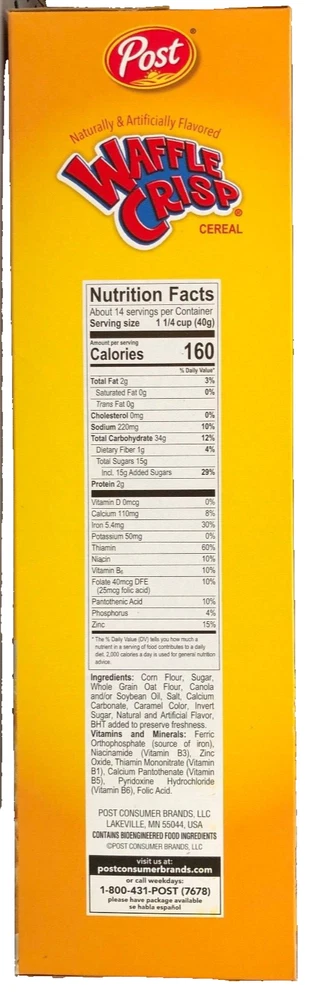 NEW SEALED POST WAFFLE CRISP FLAVORED CEREAL 20 OZ (567g) BOX. YOU WILL GET 1 20 oz (567g) BOX PER PURCHASE NEW SEALED. BOX MAY ARRIVE WITH DENTS OR CREASING DUE TO SHIPPING. FAST SHIPPING WILL SHIP NEXT DAY AFTER PAYMENT CLEARS. ON HAND READY TO SHIP! THIS ITEM WILL SHIP IN A BOX! NEW STORE BUT HAVE PLENTY OF EXPERIENCE SHIPPING. FREE WORLD WIDE SHIPPING BEST DEAL ON EBAY.