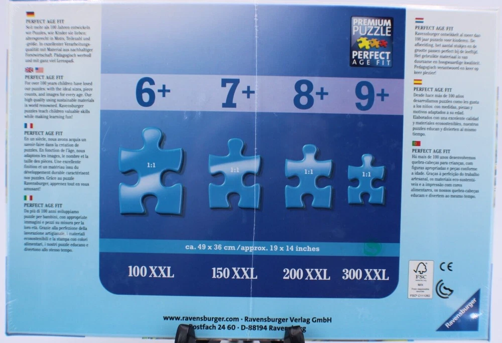 This NEW Ravensburger Disney Child Jigsaw Puzzle features characters from the popular Pixar movie Toy Story. With 100 XXL pieces, this puzzle is perfect for children ages 6 and up. The large interlocking pieces are made of sturdy cardboard and the puzzle is recommended for fans of the Disney character family. The puzzle is made by Ravensburger, a well-known brand in the puzzle-making industry. The multi-color puzzle has vibrant colors and is made in Germany. This puzzle is perfect for children who love Toy Story and Disney characters. FREE SHIPPING Completed Size: Approximately 19" x 14" See Photos for details