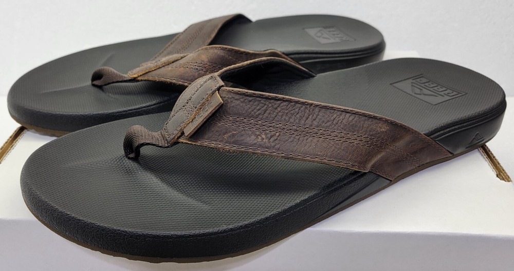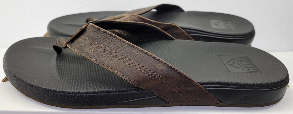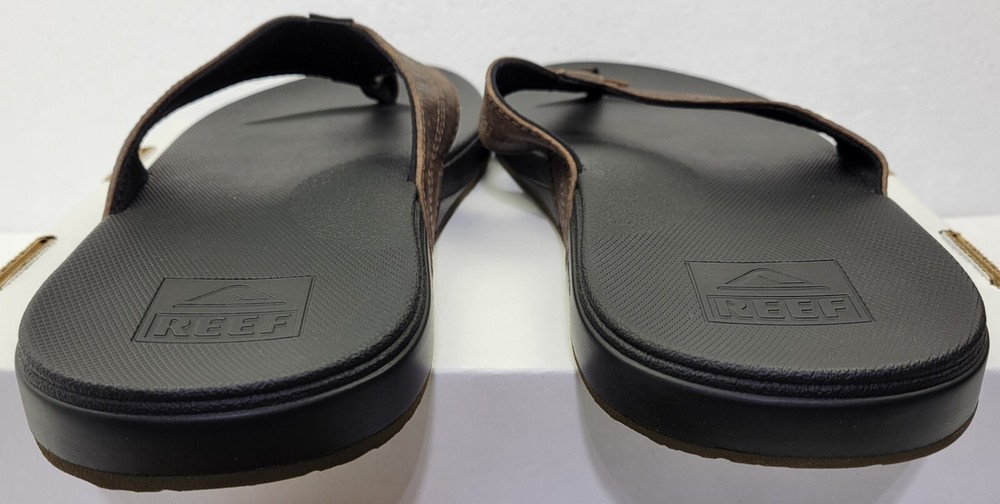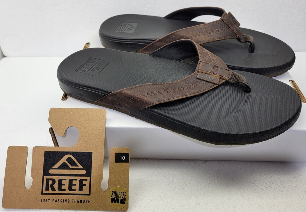 Listing is for (1) PAIR CUSHION BOUNCE PHANTOM LE BLACK WITH BROWN LEATHER SANDALS FLIP FLOPS from Reef. Men's size 10. Great for beach or pool. Brand new never worn. See pics. You are bidding on item shown. Pics of actual item for sale. NOT STOCK PHOTO. Secure packing to ensure safety of item(s). Buyer to pay s/h, please use calculator on auction page for shipping fees. All sales final as listed and pictured. No returns. Payment due within 24 hours of auction end in U.S. funds only. Questions welcome. Thanks for looking!