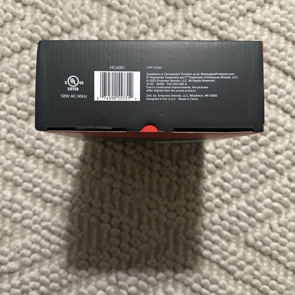 The *NEW* Remington D.I.Y Fade Haircut Kit is a men's grooming tool designed for face and body hair trimming. It is a battery-powered body trimmer with a sleek black design and a unique tapered comb for creating fades. The kit includes a rechargeable body trimmer with a cutting length of 0.9 mm, making it suitable for precise grooming. This Remington model, HC4061, is equipped with one head and is ideal for achieving professional-looking fades at home.