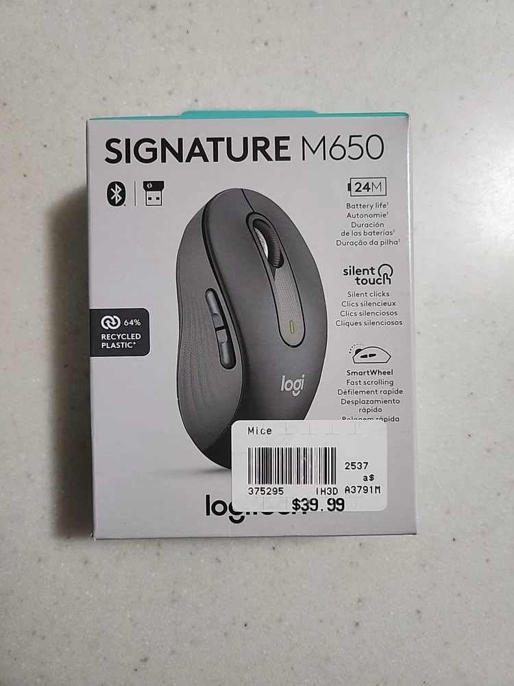 Elevate your computer experience with the Logitech Signature M650 wireless mouse in sleek Graphite color. This standard mouse boasts a maximum DPI of 4000 and a tracking method of optical, ensuring precise movement and accuracy. With five buttons and a scroll wheel, this mouse is perfect for all your computing needs. Connect this mouse to your device through Bluetooth and enjoy the freedom of wireless technology. The Logitech M650 also features adjustable DPI and an on/off switch for added convenience. This mouse comes with a one-year warranty on parts and a manufacturer warranty, ensuring peace of mind.