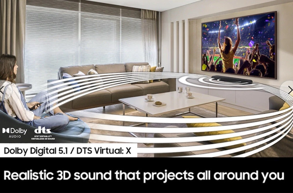 The speakers are brand new and sealed in the original box • Multi-directional sound draws you into the action with Dolby Digital 5.1 capable and DTS Virtual X. • Dolby Atmos creates realistic 3D sound by projecting it from all around you, including from above, while DTS Virtual: X expands your listening experience without having to add extra speakers. • Boost the bass with a touch of a button. Feel the rumble of distant thunder as your listening experience is taken to another level. Give your bass an instant boost with the push of a button. • The built-in center speaker delivers enhanced dialogue so you won't miss a word. The built-in center speaker is dedicated to delivering enhanced dialogue so you won't miss a word, no matter how faint the conversation or how intense the background music or action is. • Experience the intensity of action movies with the powerful bass coming from the included subwoofer*. • Enjoy optimized audio with enhanced voice clarity on all your favorite video content. Enjoy dynamically optimized audio with enhanced voice clarity so you can follow along with action-packed games and blockbuster films. Hear Better, Play Better Game Mode Plug in your console and get the amazing sound effects you expect, right away. The auto settings optimize your sound to the game you’re playing while cross-talk cancellation technology removes distracting sounds.