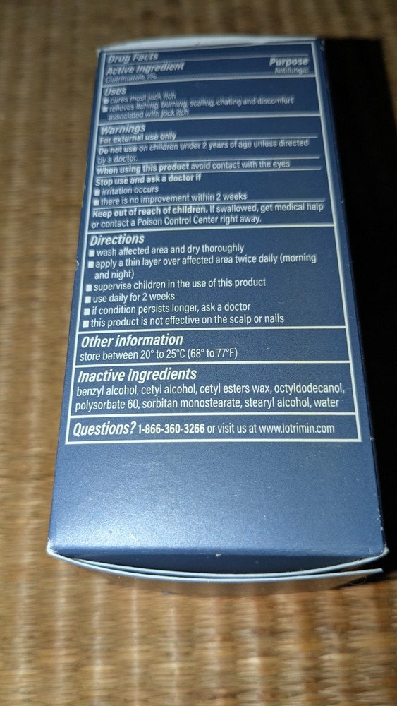 NEW Unopened Box-Lotrimin Chlortrimazole Cream Antifungal for Jock Itch 0.42 oz (12 g). Relieves itching, burning, scaling, and chafing. Proven to cure most jock itch. Much cheaper than retail. Shipment via USPS Ground Advantage. Local pickup is also available.