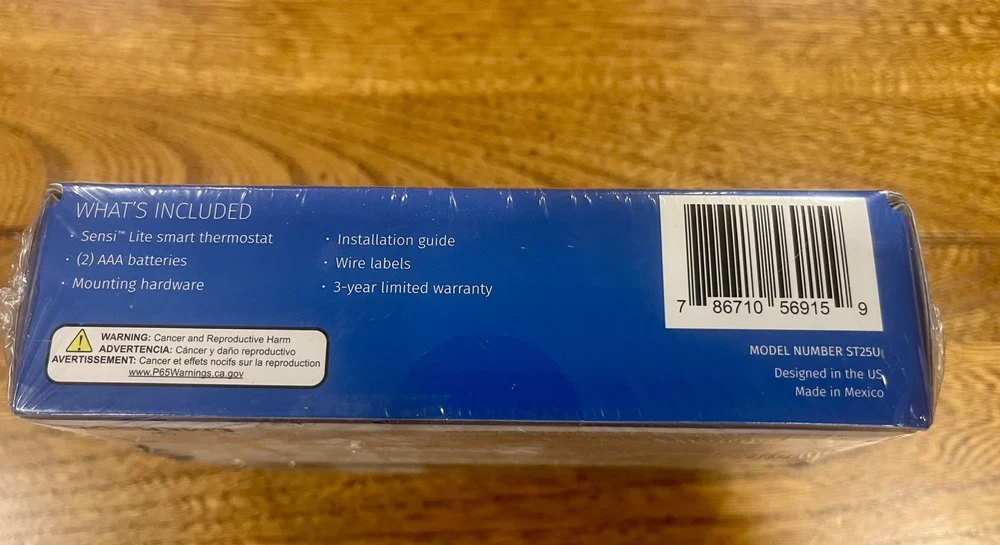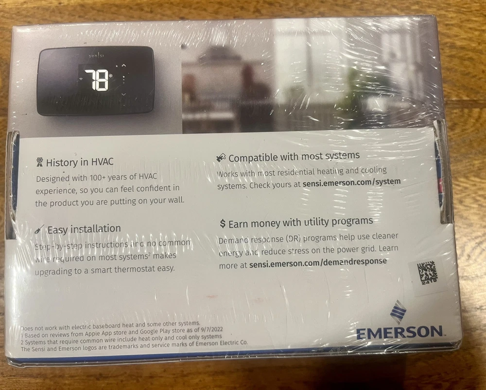 The Sensi Lite Smart Thermostat ST25U by Emerson is a programmable Wi-Fi thermostat designed for home heating and cooling systems. It is compatible with various HVAC systems including heat pumps, air conditioners, and packaged units. The thermostat features built-in Wi-Fi connectivity, allowing remote control via a mobile app and smart home integration with platforms like Apple HomeKit, Google Home/Assistant, Amazon Alexa, and Samsung SmartThings. It offers energy-saving features such as geofencing, filter replacement indicators, and automatic scheduling with up to 7 programmable days and 8 periods per day. With a black rectangular design and a 2.36-inch touch screen display, this thermostat provides convenient and efficient temperature control for your home.