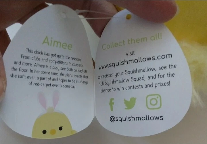 NEW Squishmallows 5” Aimee -Chick with Bunny Ears Easter 2021.