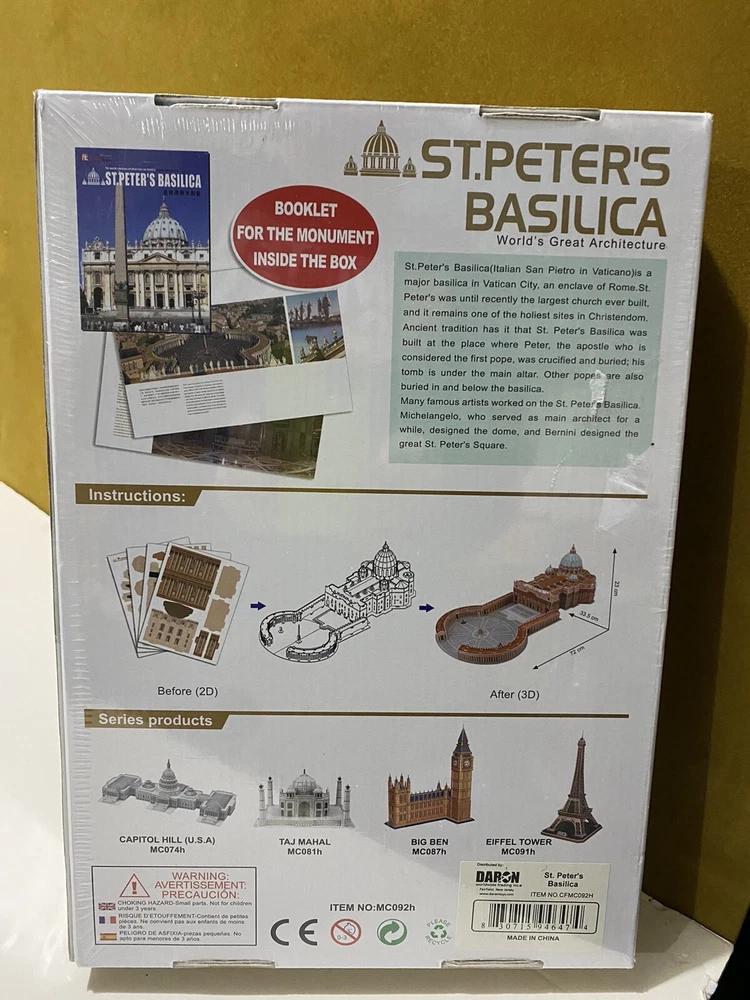 NEW St. Peter's Basilica 3D Puzzle, Sealed, 144 Pieces