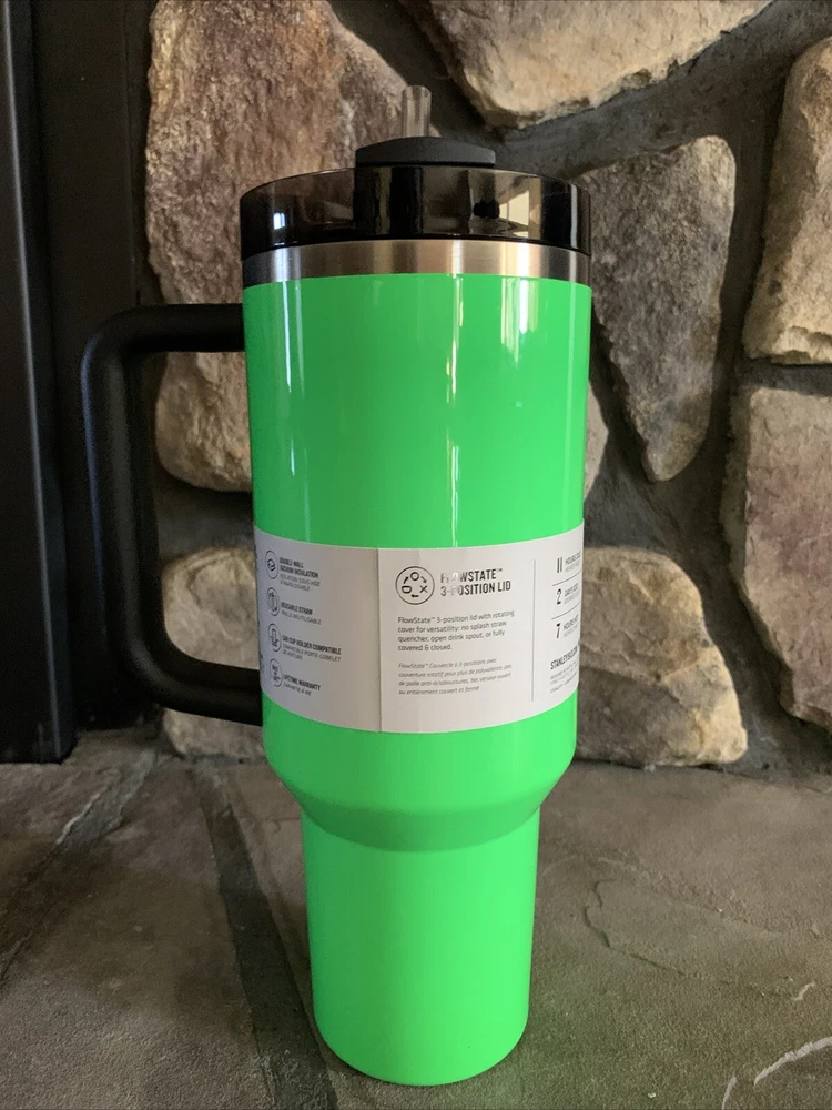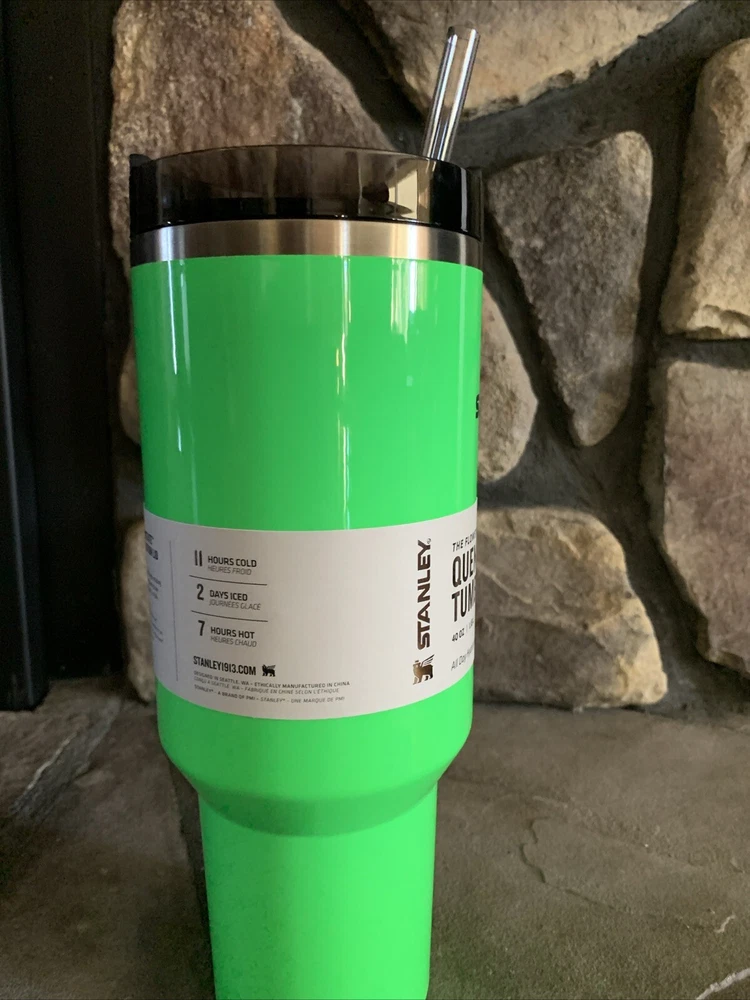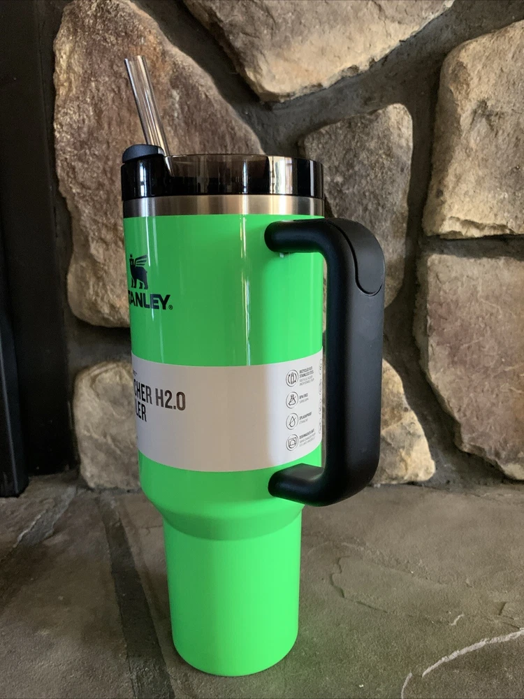 NEW Stanley 40 Oz Quencher FlowState Tumbler Neon Green-New In Box. Condition is New. Shipped with USPS Ground Advantage.