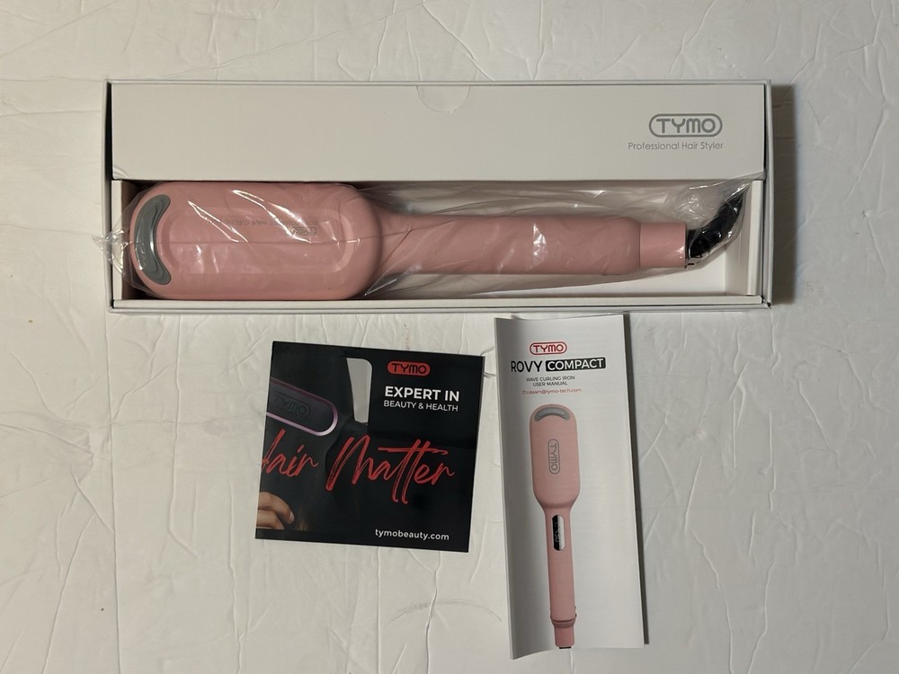 NEW TYMO Rovy Pink Wave Curling Iron Compact Ceramic Barrel Ionic Technology. Damage box Brand New