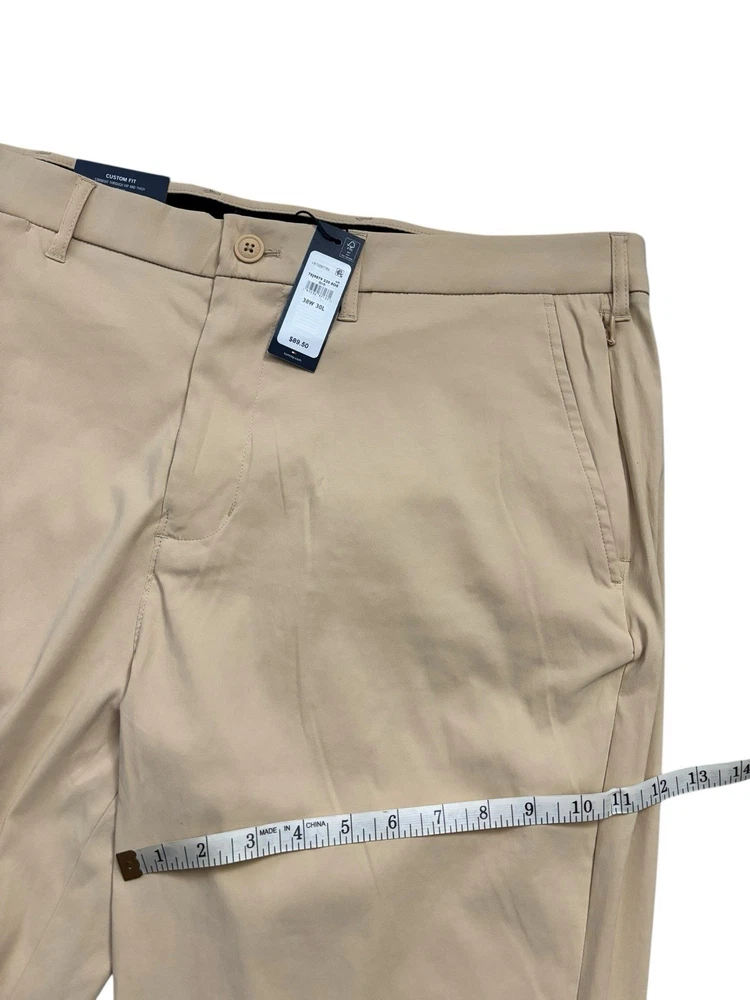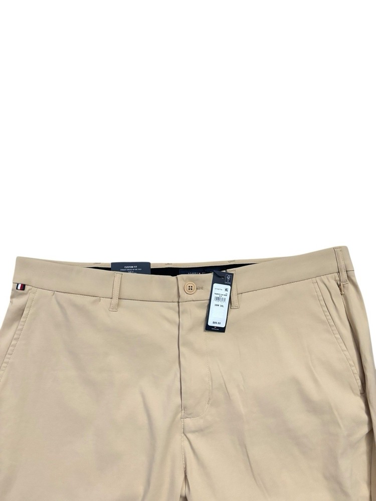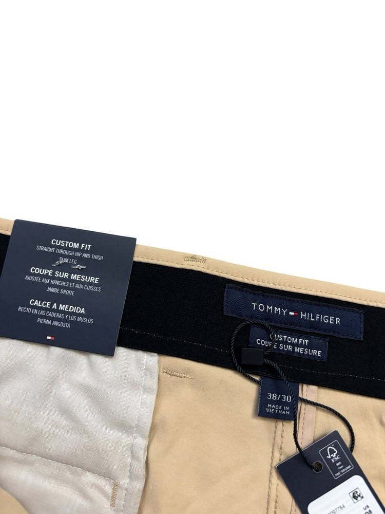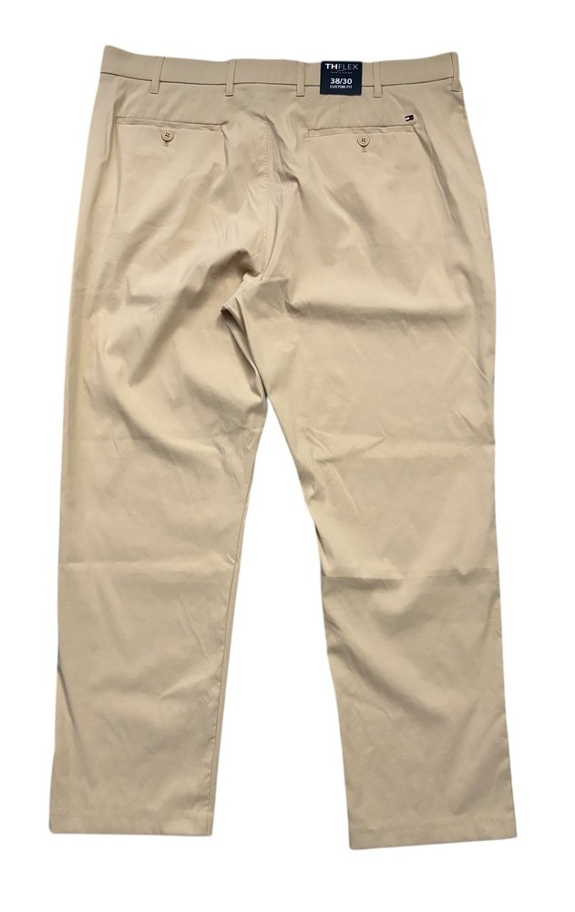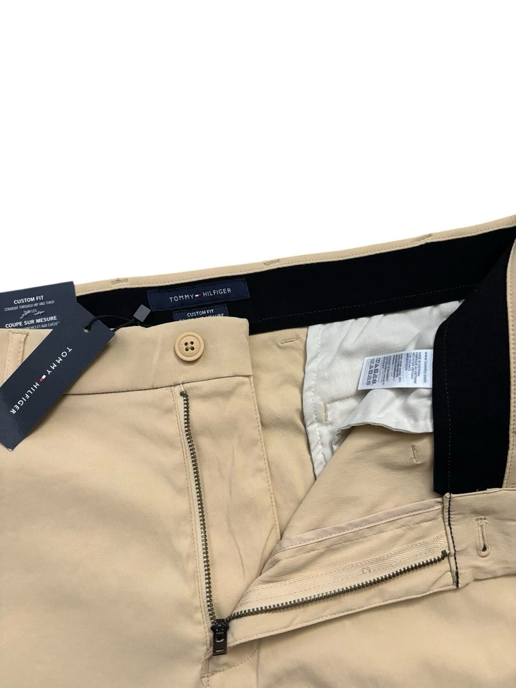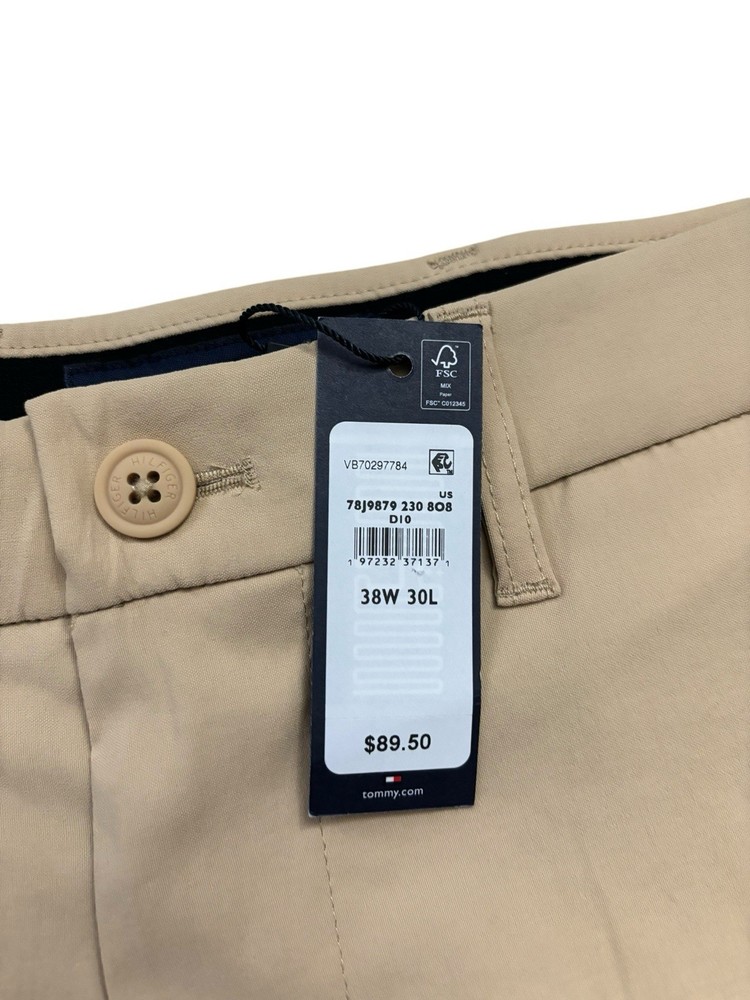Look at picture #9 for true tone color. The NEW Tommy Hilfiger Pants for men in size 38x30 are a stylish and versatile addition to any wardrobe. Featuring a peach beige color with a solid pattern, these pants are made from a comfortable and stretchy fabric blend of nylon and spandex. The mid-rise style with a flat front and straight leg give a modern and classic look, perfect for various occasions like casual outings, business meetings, or traveling. With features like comfort and moisture-wicking properties, these pants are designed for all seasons and can be easily cared for with machine washability.