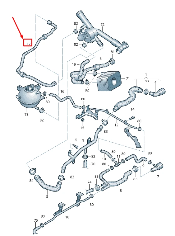 NEW VW CC 35 ENGINE COOLANT RESERVOIR HOSE 3C0121109AD ORIGINAL