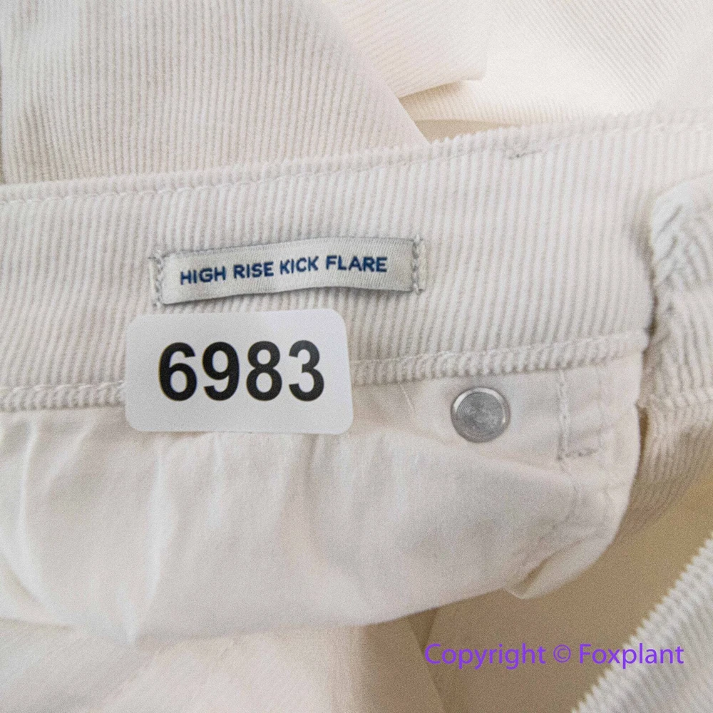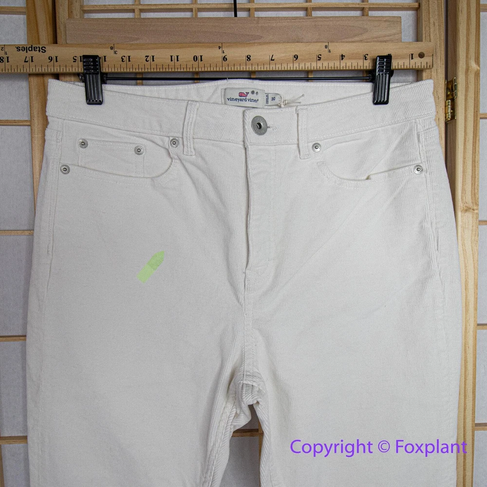 NEW Vineyard Vines high rise Pants Jeans Cotton Kick Flare Corduroy Pina Colada, 30 Please note: New with tags, some marks as shown. Zip fly with button closure Belt loops Five-pocket style Silver-tone hardware Corduroy fabrication Flared-leg silhouette, high rise Raw-edge, frayed hem Imported 75% cotton/23% viscose/2% spandex Machine wash The measurements shown are approximate and are provided as a helpful reference, but not a guarantee of fit. Sometimes inseam measuring from the crotch to the hem with a yardstick may yield a slightly different result compared to using a soft tape measure along the seam. The actual colors may vary due to differences in lighting conditions and computer monitor settings.