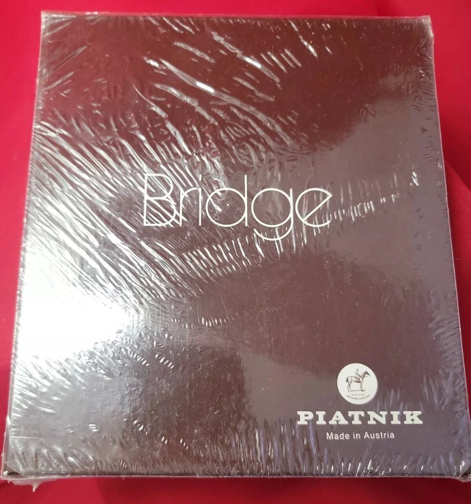 This vintage set of Piatnik Bridge playing cards is a must-have for any avid collector or fan of the popular card game. Made in Austria in the 1970s, these cards feature the iconic Piatnik brand and are perfect for display or use in gameplay. The set includes two decks of cards and a score booklet, all of which are beautifully designed and crafted. Whether you're a seasoned player or just starting out, these cards are sure to impress. Add them to your collection today!
