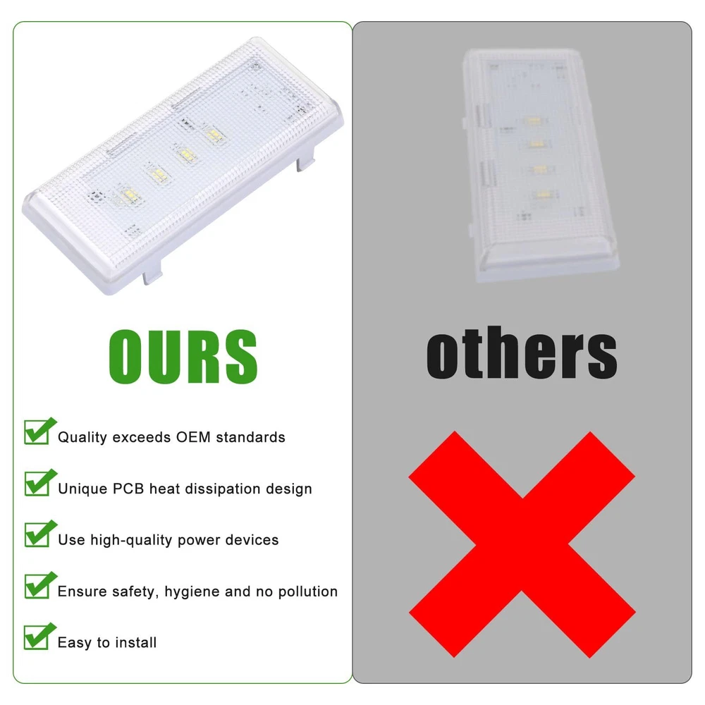 This part compatible with Whirlpool,Kenmore,Maytag,Ikea,Kitchenaid. Replacing Part Number: 8MSF25N4BW00,MSF21D4MDH01,MSF21D4MDH00,WRS325FDAB06,WRS325FDAB05,MSF25D4MDH02,WRS325FDAB04,10651729410,WRS342FIAW02,10641129211,10641129212,10651129212,10651129211,10641129210,10651129210,8MSF25N4BW02,WRS342FIAW00,WRS331FDDM01,WRS335FDDB00,WRS331FDDM00,10641129213,WRS335FDDB02,WRS335FDDB01,MSB27C2XAM00,WRS325FNAH00,10651135610,WRS325FNAH01,MSF25D4XAW00,WRS342FIAB00,MSF22D4XAW00,WRS342FIAB02,MSF22D4XAW0 Fits the following models (not all applicable models may be listed): 10651122211, 10651123211 , 10651124211 ,10651129211 , 10651129212 ,10651799412 , 10641122210 ,10641122211 , 7WRS22FDBF00 , 7WRS22FDBF02 , 7WRS22FDBW00 , 7WRS22FDBW02 Refrigerator. Part Number:WPW10515058 replaces these: WPW10515058, W10465957, W10515058, W10522611, WPW10515058VP, PS11755867, AP6022534, 3021142 .(No plastic case, only PCD board) IMPORTANT; Before Purchasing this item, you must check the other two led lights in the refrigerator. One is located in the mid section of the cooler side, the other one is located in the freezer side. If any of these lid lights are bad they must be replaced before the new main board installed . if these led lights are bad it will cause the main board to burn shortly after installation This part works with the following brands: Whirlpool, Kenmore, Maytag, KitchenAid. ,this listing is for the main led light located in the ceiling of the cooler side If you buy this led and still the leds do not work, that means you have short circuit with other two leds. You need to buy 2 pieces of W10515057 and replace all three to have working leds. If you have any questions, please login to your Amazon buyer account to leave us a message, we will solve you as soon as possible