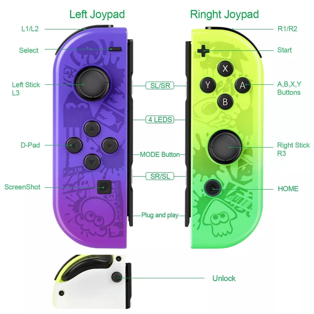 Product Description Controller Console for Nintendo Switch , One Pair Wireless Gamepad Not Original Nintendo Controller Feature: Ideal replacements for original switch controller joypad. These switch joypad controller can be used with Switch, Switch Lite and Switch OLED. Sensor - Both left and right joypad have 6-Axis Gyroscope. With it, you can get a more realistic game experience, more accurate strikes and more fantastic controls. These switch joy-pad controllers can play many games like Zelda, Mario, Pokemon and more This joypad controller supports wake up function. You just need to press the HOME button for several seconds to light up your switch. The controller also has capturing. When playing games, press the Capture button to record your splendid moment and share with your friends. Included: 1 Left switch controller 1 Right switch controller