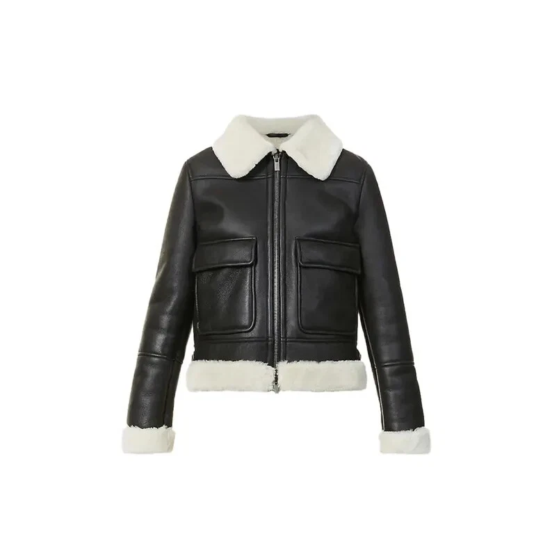 Come as Pictured. Stay warm and stylish with this NEW Women’s Black Real Shearling Big Collar Fur Premium Leather Jacket. Crafted from high-quality leather and lined with soft shearling, this mid-length bomber jacket features a striking big collar and long sleeves for added warmth. The zip closure and accents give it a touch of edgy style, perfect for any occasion from travel to casual outings or parties. Available in sizes XXS to 3XL, this jacket is a must-have for the upcoming winter, fall, and spring seasons. Made in Pakistan, this jacket is a luxurious addition to any wardrobe. Shipping Terms : Yes we Ship Worldwide. Note : Order will be Dispatch within 3 Business Days from Date of Purchase.