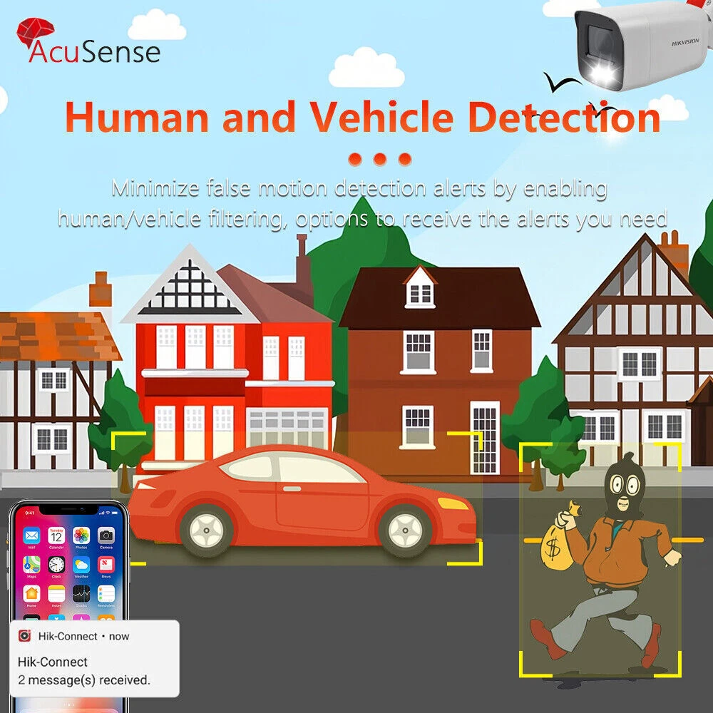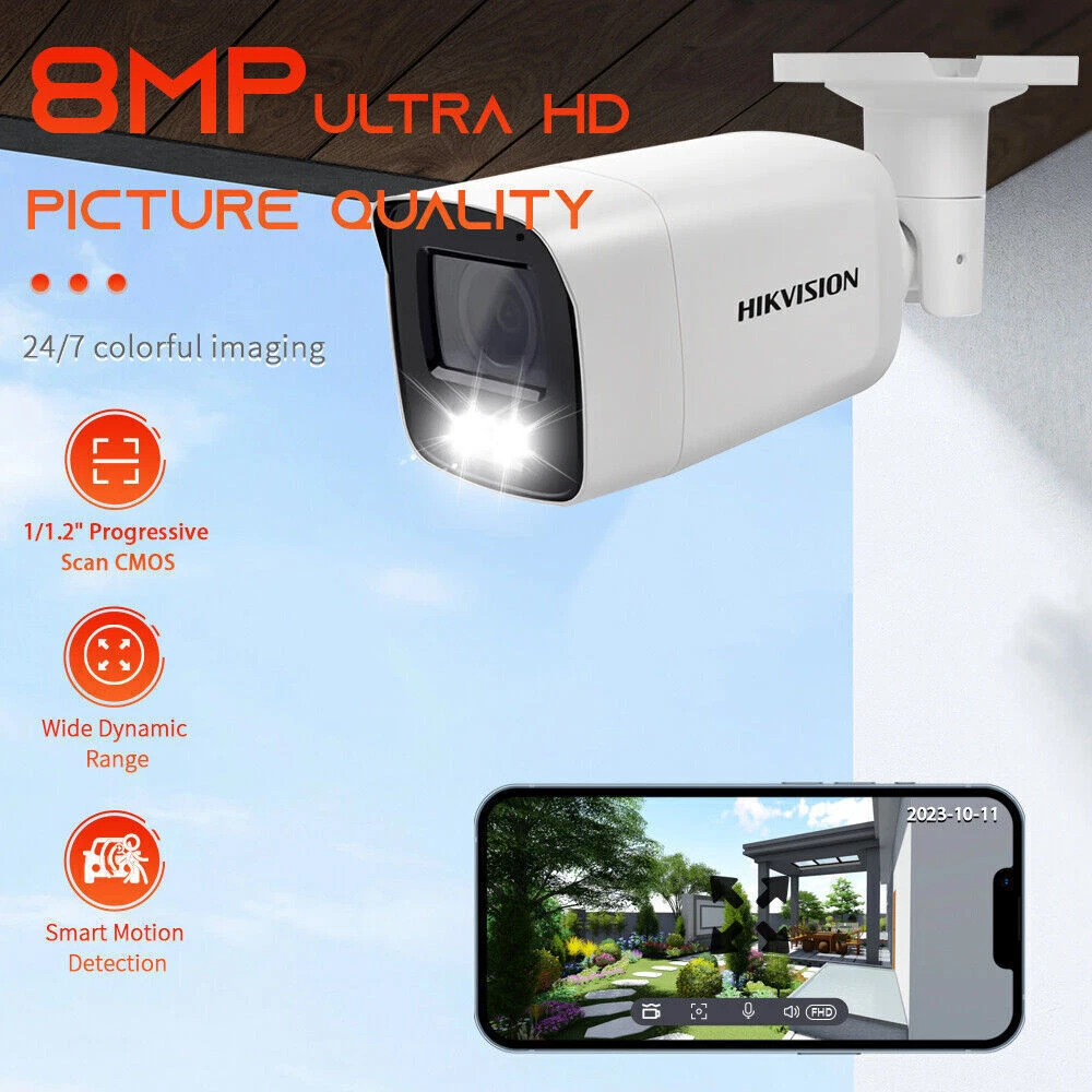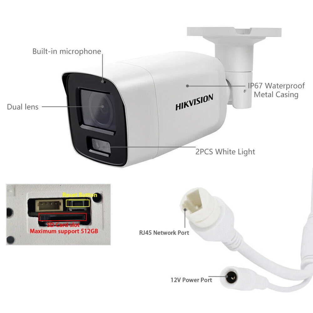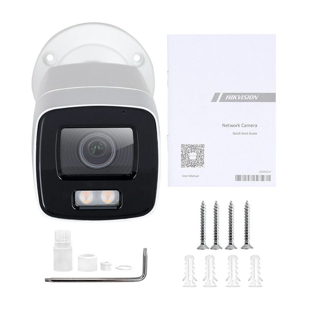 Product Description NEW hikvision DS-2CD2087G2-LU 8MP ColorVu AcuSense Bullet PoE MIC IP67 IP Camera 4 K ColorVu Fixed Bullet Network Camera High quality imaging with 8 MP resolution Efficient H.265+ compression technology Clear imaging against strong back light due to 130 dB WDR technology Focus on human and vehicle classification based on deep learning 24/7 colorful imaging Built-in microphone for real-time audio security (-U) Lens Lens Type Fixed focal lens, 2.8, 4, and 6 mm optional Focal Length & FOV 2.8 mm: horizontal FOV102°, vertical FOV 52°, diagonal FOV 124° 4 mm: horizontal FOV 88°, vertical FOV 47°, diagonal FOV 104° 6 mm: horizontal FOV 54°, vertical FOV 30°, diagonal FOV 62° Iris Type Fixed Aperture F1.0 Depth Of Field 2.8 mm: 4.5 m to ∞ 4 mm: 7 m to ∞ 6 mm: 13 m to ∞ DORI DORI 2.8 mm, D: 96 m, O: 38 m, R: 19 m, I: 10 m 4 mm, D: 102 m, O: 41 m, R: 21 m, I: 11 m 6 mm, D: 167 m, O: 66 m, R: 33 m, I: 16 m Illuminator Supplement Light Type White light Supplement Light Range 40 m Smart Supplement Light Yes Video Main Stream 50 Hz: 25 fps (3840 × 2160, 3200 × 1800 , 2688 × 1520, 1920 × 1080, 1280 × 720) 60 Hz: 24 fps (3840 × 2160) 30 fps (3200 x 1800 , 2688 × 1520, 1920 × 1080, 1280 × 720) Sub-Stream 50 Hz: 25 fps (640 × 480, 640 × 360) 60 Hz: 30 fps (640 × 480, 640 × 360) Third Stream 50 Hz: 10 fps (1920 x 1080 , 1280 × 720, 640 × 480, 640 × 360) 60 Hz: 10 fps (1920 x 1080 , 1280 × 720, 640 × 480, 640 × 360) Video Compression Main stream: H.265/H.264/H.264+/H.265+ Sub-stream: H.265/H.264/MJPEG Third stream: H.265/H.264 Video Bit Rate 32 Kbps to 16 Mbps H.264 Type Baseline Profile/Main Profile/High Profile H.265 Type Main Profile Bit Rate Control CBR/VBR Scalable Video Coding (SVC) H.264 and H.265 encoding Region Of Interest (ROI) 1 fixed region for main stream and sub-stream Audio Audio Compression -U: G.711ulaw/G.711alaw/G.722.1/G.726/MP2L2/PCM/MP3/AAC Audio Bit Rate -U: 64 Kbps (G.711 ulaw)/64 Kbps(G.711 alaw)/16 Kbps(G.722.1)/16 Kbps(G.726)/32 to 192 Kbps(MP2L2)/8 to 320 Kbps(MP3)/16 to 64Kbps(AAC) Audio Sampling Rate -U: 8 kHz/16 kHz/32 kHz/44.1 kHz/48 kHz Environment Noise Filtering -U: Yes Network Protocols TCP/IP, ICMP, HTTP, HTTPS, FTP, DHCP, DNS, DDNS, RTP, RTSP, NTP, UPnP, SMTP, IGMP, 802.1X, QoS, IPv4, IPv6, UDP, Bonjour, SSL/TLS, PPPoE, SNMP Simultaneous Live View Up to 6 channels API Open Network Video Interface (Profile S, Profile G, Profile T), ISAPI, SDK User/Host Up to 32 users. 3 user levels: administrator, operator and user Security Password protection, complicated password, HTTPS encryption, IP address filter, Security Audit Log, basic and digest authentication for HTTP/HTTPS, TLS 1.1/1.2, WSSE and digest authentication for Open Network Video Interface Network Storage NAS (NFS, SMB/CIFS), auto network replenishment (ANR) Client iVMS-4200, Hik-Connect, Hik-Central Web Browser Plug-in required live view: IE 10, IE 11 Plug-in free live view : Chrome 57.0+, Firefox 52.0+ Local service: Chrome 57.0+, Firefox 52.0+ Image Image Parameters Switch Yes Image Settings Rotate, mirror, privacy mask, saturation, brightness, contrast, sharpness, gain, white balance adjustable by client software or web browser Day/Night Switch Day, Night, Auto, Schedule Wide Dynamic Range (WDR) 130 dB SNR ≥ 52 dB Image Enhancement BLC, HLC, 3D DNR Interface Ethernet Interface 1 RJ45 10 M/100 M self-adaptive Ethernet port On-Board Storage Built-in memory card slot, support microSD/microSDHC/microSDXC/TF card, up to 256 GB Built-In Microphone -U: Yes Reset Key Yes Event Basic Event Motion detection (human and vehicle targets classification), video tampering alarm, exception (network disconnected, IP address conflict, illegal login, HDD full, HDD error) Smart Event Line crossing, intrusion, region entrance, region exiting (support alarm triggering by specified target types (human and vehicle)) Scene change detection Linkage Upload to FTP/memory card/NAS, notify surveillance center, trigger record, trigger capture, send email Deep Learning Function Face Capture Yes General Power 12 VDC ± 25%, 0.5 A, max. 6 W, Ø5.5 mm coaxial power plug, reverse polarity protection PoE: (802.3af, Class 3, 36 V to 57 V), 0.25 A to 0.15 A, max. 7.5 W Dimension 78.8 × 78.6 × 215.2 mm (3.1" × 3.1" × 8.5") Package Dimension 315 × 137 × 141 mm (12.4" × 5.4" × 5.6") Weight Approx. 850 g (1.9 lb.) With Package Weight Approx. 1270 g (2.8 lb.) Storage Conditions -30 °C to 60 °C (-22 °F to 140 °F). Humidity 95% or less (non-condensing) Startup And Operating Conditions -30 °C to 60 °C (-22 °F to 140 °F). Humidity 95% or less (non-condensing) Language 33 languages English, Russian, Estonian, Bulgarian, Hungarian, Greek, German, Italian, Czech, Slovak, French, Polish, Dutch, Portuguese, Spanish, Romanian, Danish, Swedish, Norwegian, Finnish, Croatian, Slovenian, Serbian, Turkish, Korean, Traditional Chinese, Thai, Vietnamese, Japanese, Latvian, Lithuanian, Portuguese (Brazil), Ukrainian General Function Anti-flicker, heartbeat, password reset via e-mail, pixel counter Approval EMC FCC (47 CFR Part 15, Subpart B); CE-EMC (EN 55032: 2015, EN 61000-3-2:2019, EN 61000-3-3:2013+A1:2019, EN 50130-4: 2011 +A1: 2014); RCM (AS/NZS CISPR 32: 2015); IC (ICES-003: Issue 7) Safety UL (UL 62368-1); CB (IEC 62368-1:2014+A11) CE-LVD (EN 62368-1:2014/A11:2017) Environment CE-RoHS (2011/65/EU); WEEE (2012/19/EU); Reach (Regulation (EC) No 1907/2006) Protection IP67 (IEC 60529-2013) About Us Payment and Shipping: 1. we only accept PayPal payment. 2. We will ship your order within 5 days. Please make sure your shipping address and phone number are correct. Returns 1. If the item arrives with defects or errors, before you start the return process, please contact us via ebay message and we will provide you with a satisfactory solution. Communication is always the best way to solve problems. 2. If you do not receive your item on time, please contact us for further assistance. Feedback and Contact