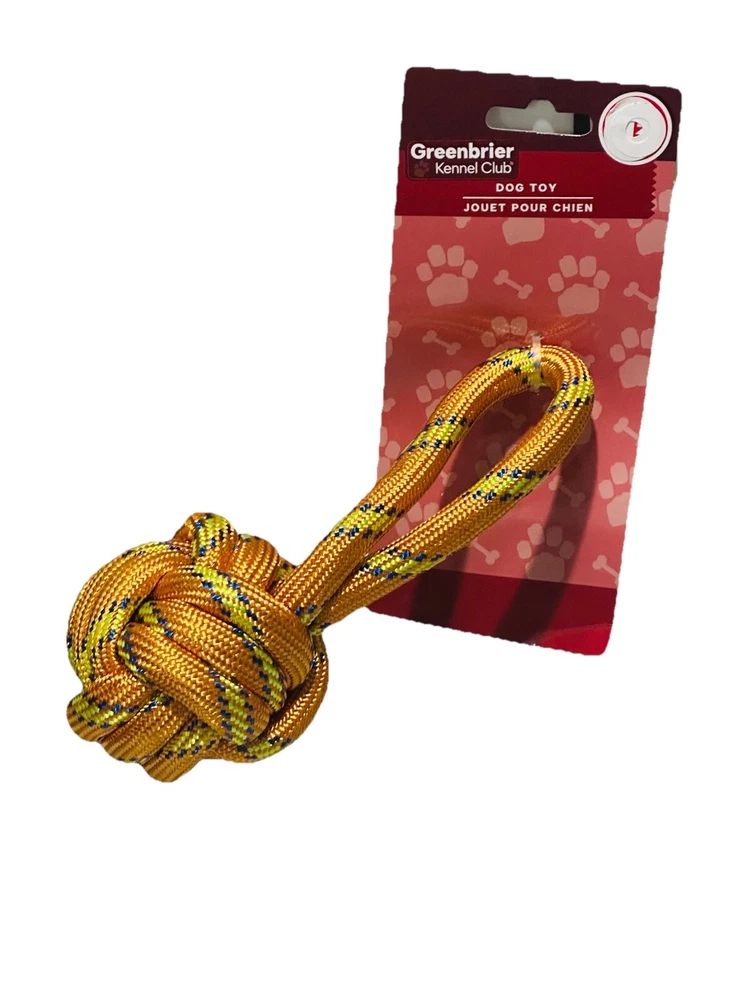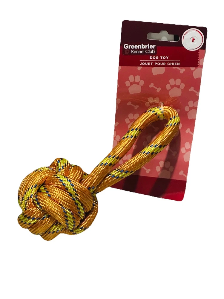This is a high-quality dog toy consisting of a rope ball designed for dogs of sizes XL, L, and M. The toy is manufactured by Greenbriar and is made of durable rope material, ensuring strength and longevity. It is a new item with tags still attached, indicating that it has not been used before. The multicolor design adds visual appeal, making it an attractive and engaging toy for dogs to play with. This rope ball toy offers both fun and durability for dogs to enjoy during playtime.