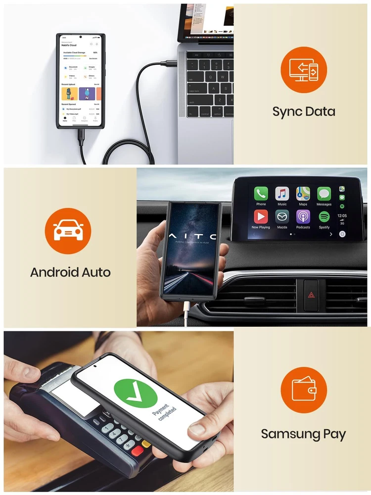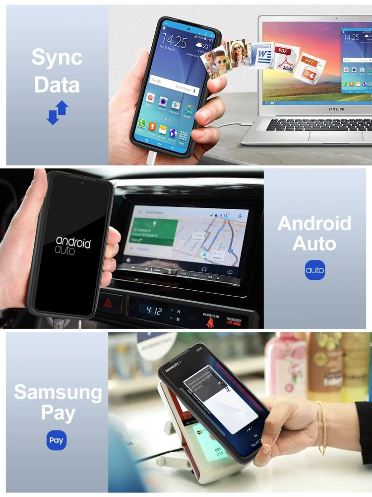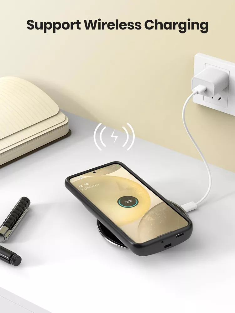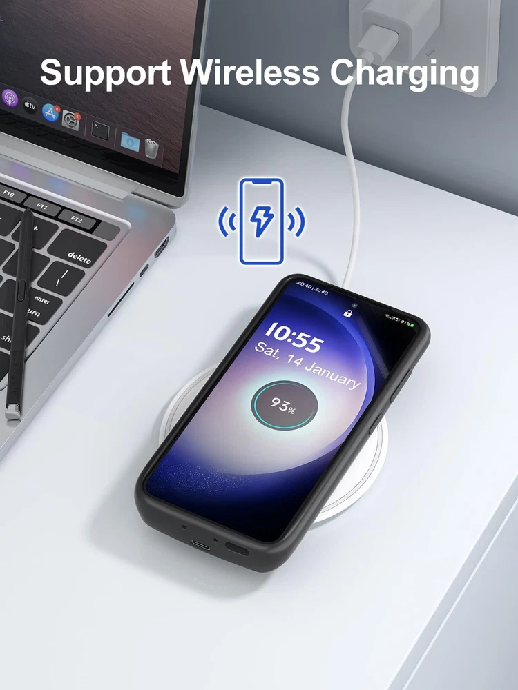 ================================ 【Qi Wireless Charging & Bluetooth headphones Supported】Newdery galaxy S21 S22 S23 S24 battery case allows you to charge the case and your phone simultaneously via Qi wireless charging pad (not included).ONLY support Bluetooth wireless headphones. 【EXTENDED 100% BATTERY LIFE】Samsung S21 S22 S23 S24 slim backup case battery with built-in 4700 or 4800 mAh rechargeable Li-polymer battery pack, doubles your battery life. The galaxy S21 S22 S23 S24 extended case is great for go shopping and travel. 【LED Indicator Light】All-in-One charging case makes convenience. If you charge your phone via Phone battery case at the first time, please hold the power button for 3s to start charging. Besides, it's convenience to track how much power left through ONE-clicking power button. 【360° PROTECT YOUR PHONE】Newdery Battery charger case is not only a portable power bank, but also a protective case for cellphone from scratches. Raised bezels help you to protect the screen to some extent. Please still add a protectors to your phone to prevent it from facing drops. Product Specifications: Capacity: 4700mAh or 4800mAh Input: USB-C DC 5V/1.8A (MAX) Wireless DC 5V/1A (MAX) Output: USB-C DC5V/1.5A (MAX) Battery case fully charges the phone: 2h To fully charge the battery case: 3.3h To fully charge the battery case via wireless charging pad: 4h To fully charge the battery case and the phone: 5.3h Dimensions:6.18*3.07*0.71 inch DOES NOT compatible with type-c headphones. DOES NOT support Data Sync/Samsung Pay/Android Auto/CarPlay. DOES NOT support magnetic/High Voltage, Quick Charge adapters. Charging via cable/Wireless station: You can charge the phone external battery case with phone via the original charging cable at the same time. And Newdery phone charging case can be charged via the Qi wireless pad without take off the case. What do you get Samsung Battery Case x 1 User Manual x 1 Card x 1 Easy to Use Slide your phone in slowly, make sure the connector of the Phone charger case with phone properly. Press the button for 3s to begin/stop charging your phone If you need to take it off, bend the top soft rubber of the case, then push your phone up slowly.